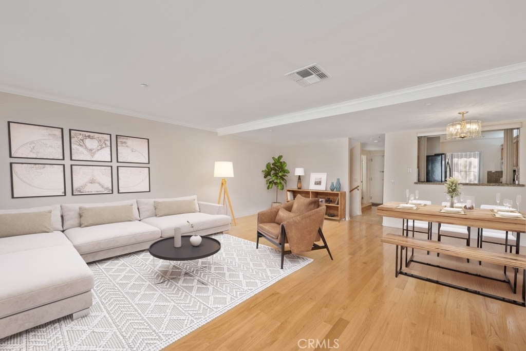 Gorgeous and Upgraded Tri-level Townhome in Van Nuys! This 1,714 sq ft home boasts 3 bedrooms and 2.5 baths and is secured with a built-in security system. On the main floor, you will be welcomed by a bright and spacious floorplan with hardwood flooring in the living/dining room and stairwells, as well as smooth ceilings throughout. Enjoy cooking in the updated kitchen featuring granite countertops and equipped with stainless steel appliances. The third floor features all 3 bedrooms along with a washer & dryer and 2 upgraded full baths. The Grand Master Suite has a walk-in closet, high ceiling, sky light, and an upgraded en suite bath. Other bedrooms are spacious with plenty of closet space. The lower level boasts a bonus room that is perfect for a home office or a gym and is adjacent to the private, 2 car direct access garage. This gated community offers an intercom system and is minutes away from major freeways, parks, restaurants, and shopping! See this gem as this home is Priced to Sell, come pick up The Key to Your New Home!