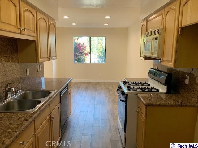 Seller will give $5,000.00 credit for new kitchen cabinets! Back on the market with modern look! Newly remodeled and upgraded unit. New Floors, New bathrooms, New shower doors, New faucets, New bathroom vanities, New tiles, New paint, New doors, New recess lights, New base moldings, etc. Very very spacious unit, hard to find this size, enormous size closets/storage space, formal entry, over sized living room, dining/breakfast area. Tree Top views from huge balcony. Very large master bedroom/bathroom with double sink, dressing area, walk-in and built-in closets. Extremely generous size bedrooms. Separate laundry room, water heater on the balcony, a lot of storage space, total 6 closets. The unit is located in the back of the building, private living, 2nd floor, elevator access, front and rear staircases. Beautiful courtyard. 2 tandem parking. Close proximity to transportation, shopping, movie theaters, schools, college, freeways, etc. The owner/seller is a listing agent, licensed realtor in CA.
