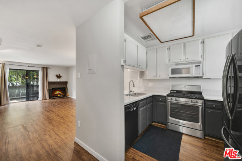 Run, don't walk to this amazing turn-key condo. Thoughtfully finished throughout, downstairs you'll enjoy a bright updated kitchen with ample cabinet space, Caesarstone counter finishes, a new stainless steel Samsung fridge, an open concept dining area/living room warmed with updated floors and lighting, a renovated powder room for guests and a plus-sized patio for relaxing and easy entertaining. Upstairs you'll find a well-sized master bedroom and renovated en suite master bath. Down the hall, as you pass the in-unit washer, dryer, and laundry area, you'll find a large second bedroom with en suite bath as well. This home also includes new double-paned windows, a new HVAC system, and custom window treatments. You'll also enjoy close proximity to many great things such as eclectic dining options and grocery stores, freeway access, walking distance to Metrolink's Ventura County Line for fast commutes to Downtown, and an expected light rail line by 2027. This is truly a place to call home