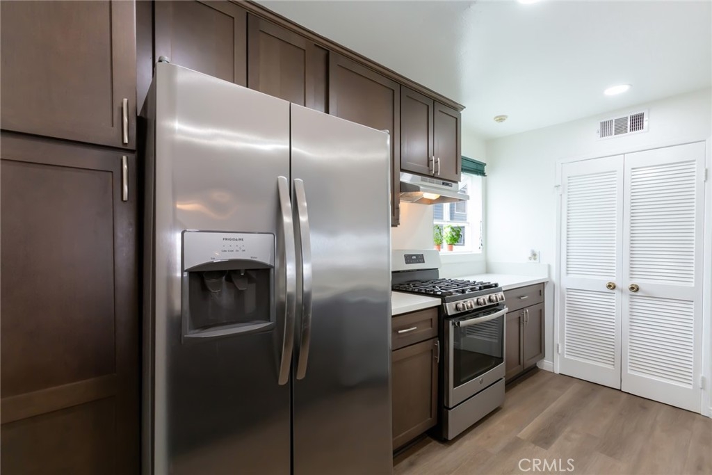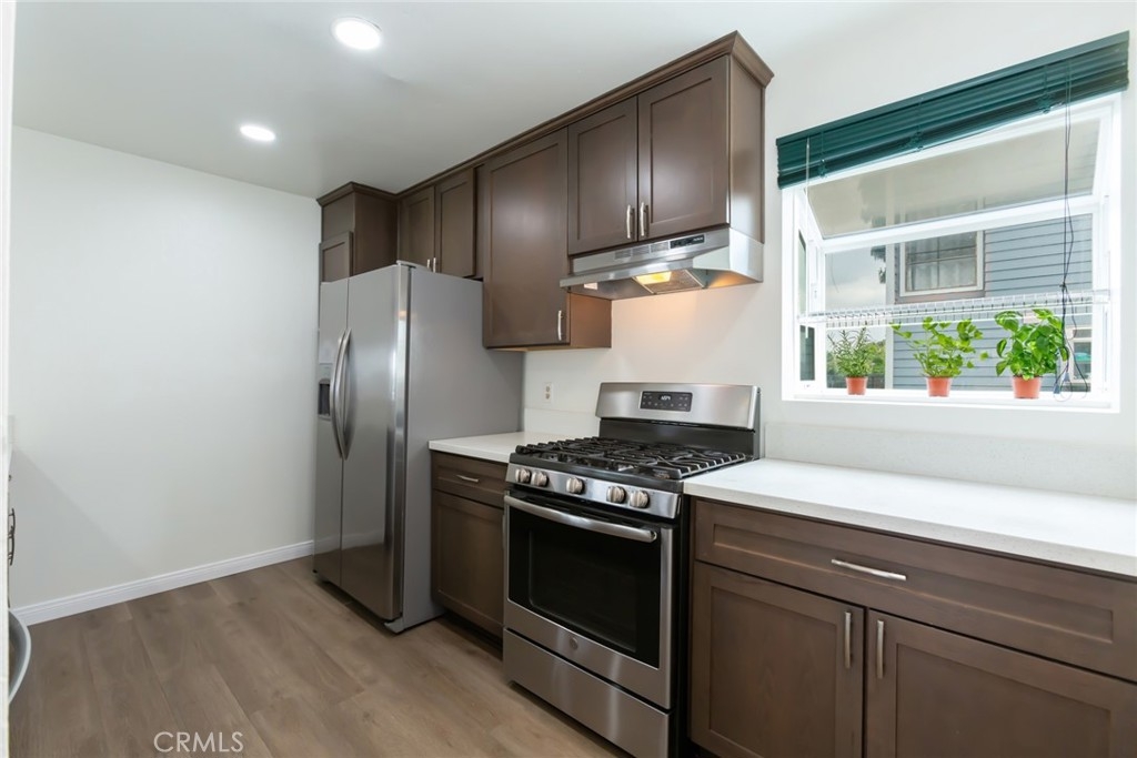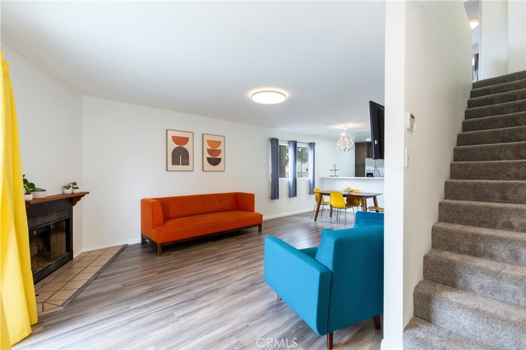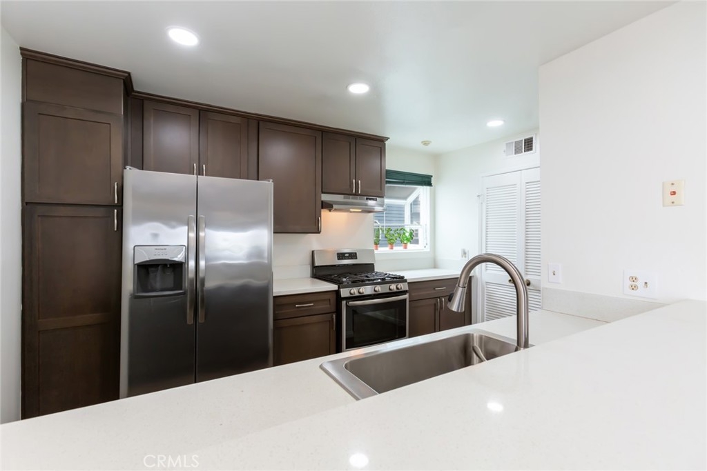 Come home to this beautiful, recently renovated townhouse-style condo located in a desirable end unit, with only one shared wall. With two bedrooms and two and a half bathrooms, this two-story condo townhouse is perfect for those seeking comfortable and updated living. As you enter the home, you'll be greeted with a light and bright atmosphere, freshly painted walls, and an open floor plan that connects the living room, dining area, and kitchen. The sunlit living room is cozy and inviting, complete with a gas fireplace that's perfect for those chilly evenings. The dining area flows seamlessly into the large updated kitchen, which is equipped with plenty of storage space, a garden window, a breakfast counter top with room for seating as well as a walk in pantry! If you love outdoor living, you'll appreciate the large private fenced side patio that's perfect for relaxing or entertaining guests. This outdoor space provides the perfect complement to the indoor living area. Upstairs, you'll find two en-suite bedrooms that are fully carpeted in neutral tones, providing a calm and peaceful atmosphere. The hallway linen cabinet, skylight, and full-size side by side washer and dryer closet adds to the convenience of the second floor. This home is equipped with its own water heater and HVAC unit. Additionally, the unit comes with its own carport beneath the unit, which can accommodate two tandem cars and storage. There is also ample guest parking available, conveniently close to this unit. The complex amenities include controlled access front and back gates, a pool, water, trash, sewer, and insurance. With its prime location, this condo is just a short distance away from bus lines, freeways, shopping, and schools. Don't miss out on this amazing townhome at a great price. Schedule a showing today and make it yours!