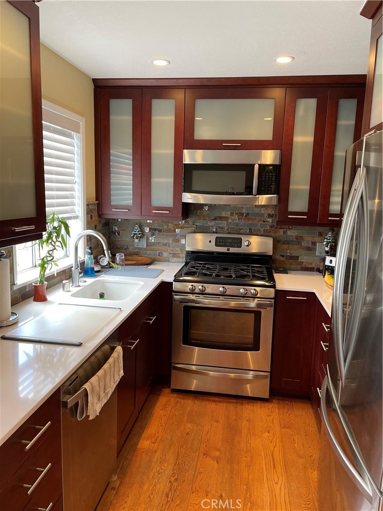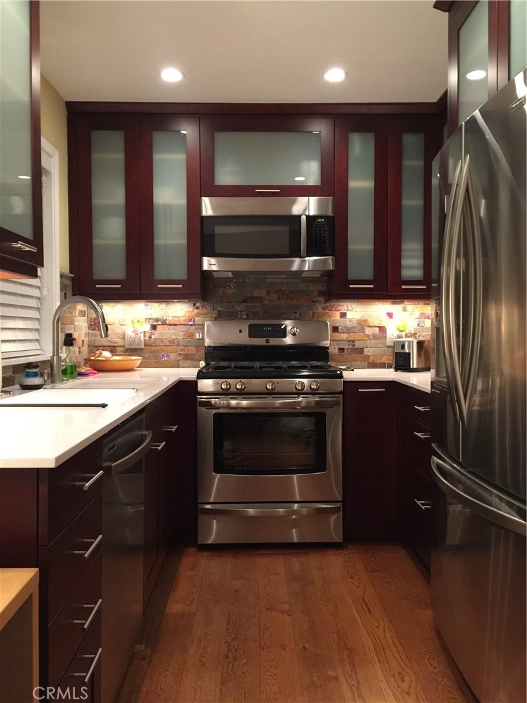 Opportunity has come to one lucky Buyer. Now back on the market due to no fault of the seller, buyer walked...... Welcome to this exquisite and impeccably upgraded end unit townhome, ensuring privacy and luxury for its fortunate new owner. This thoughtfully remodeled residence is a showcase of modern sophistication and attention to detail. Step inside to discover two primary suites, each with its walk-in closet, providing a retreat-like experience for the occupants. The allure of this home extends beyond its interiors with not one, but two balconies offering a delightful outdoor escape. Enjoy the serene views and fresh air from these private vantage points. A host of amenities elevates the living experience in this home. The kitchen has undergone a full renovation, showcasing high-end finishes and stainless steel appliances. The addition of a full wet bar enhances the entertainment possibilities, making this home an ideal space for hosting gatherings. No detail has been overlooked, from the newer recessed lighting throughout to the convenience of dimmers on all switches, creating a customizable ambiance to suit any mood. Practical features include a tankless water heater, full home central AC, and a new compressor and furnace. The garage, a true standout, boasts a beautiful new door, fireproof entry, washer, dryer, and an expansive "basement-like" storage area. Custom window coverings and shutters add a touch of elegance, while the inclusion of fiber optic cable ensures connectivity for the modern lifestyle. This residence exceeds expectations with its comprehensive list of upgrades. Situated far away from the street, this home offers a tranquil setting, providing a perfect retreat from the hustle and bustle. Multiple windows not only flood the living spaces with natural light but also add to the warmth and welcoming appeal, creating a bright and inviting atmosphere throughout. For added security and convenience, a Ring doorbell with video capability ensures you can monitor your home's entrance with ease. The Nest system contributes to the perfect comfort of your home, allowing you to effortlessly control the climate and create a smart, energy-efficient living environment. The complex itself offers additional amenities, including a pool, spa, and guest parking, further enhancing the lifestyle this community provides. Opportunities like this are rare – seize the chance to make this extraordinary home yours. Schedule a viewing today!
