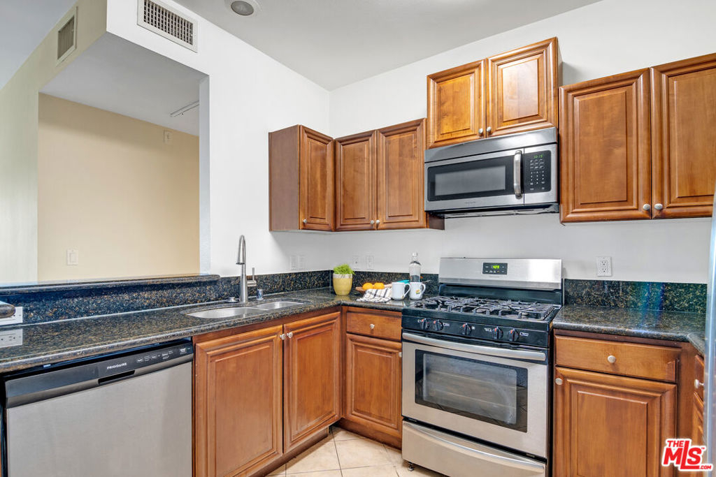 Welcome to specious and bright 2bed and 2bath condominium located in heart of Van Nuys and just few minutes away from shopping, restaurants at Ventura Blvd Strip. This lovely home boasts an open concept floor that leads you to upgraded kitchen with stainless -steal appliances and granite counter tops. The large master bedroom comes with en suite bathroom and specious walk-in closet. Bright second bedroom could be used for an office for working from home. All kitchen appliances, washer and dryer combo inside the unit are included. Well maintained unit, with two assigned parking spaces in the garage. HOA monthly fee covers water, trash and building maintenance such as landscaping, elevator service, gym and recreation room and more.! This one-of-a-kind unit is a must see!
