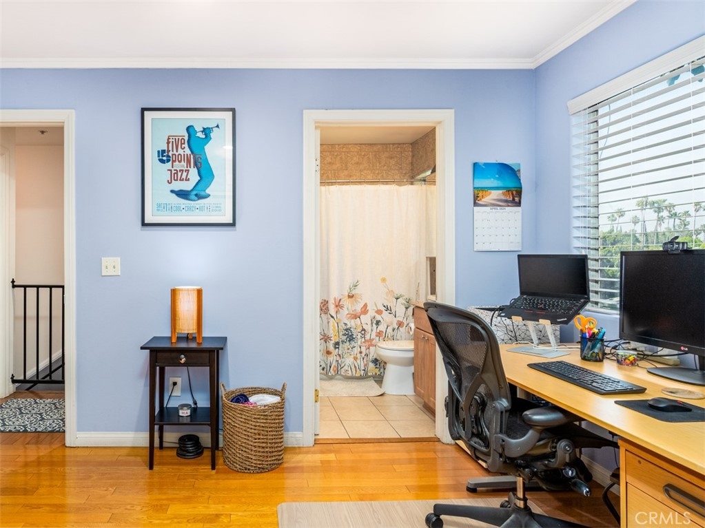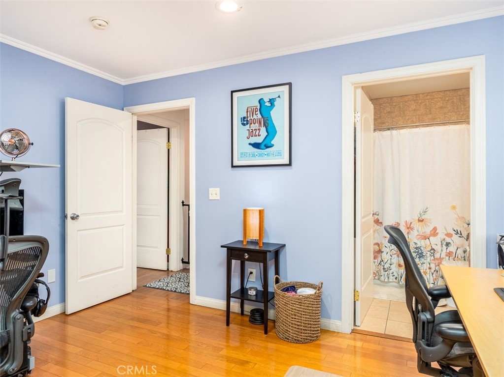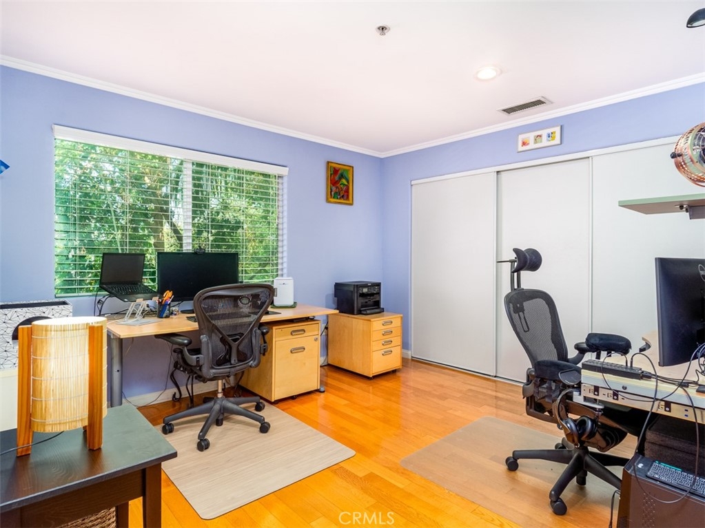 Welcome to your dream townhouse nestled in the heart of the valley! This captivating 2-story Sherman Oaks adjacent residence, built in 2006, epitomizes modern comfort and style. Step inside and be greeted by an abundance of natural light gleaming across hardwood floors, creating an inviting atmosphere throughout. The open concept first floor seamlessly flows into the kitchen, forming the perfect space for entertaining guests or relaxing with loved ones. The kitchen features granite countertops, maple cabinets, stainless steel appliances, and a convenient walk-in pantry. Convenience is key with a laundry closet equipped with storage and a downstairs powder room with a charming pedestal sink. Step outside onto your private balcony through a glass slider where you can savor your morning coffee or unwind after a long day. Venture upstairs to discover two generously sized primary bedrooms, each accompanied by its own ensuite bathroom with granite counter vanities and ample closet space. This townhome boasts thoughtful details at every corner, including recessed lighting, ceiling fans, and crown molding. The wood staircase adorned with two-tone paint and chair rail accents adds a touch of sophistication to the space. Parking is a breeze with a secure 2-car subterranean parking garage, offering peace of mind and easy access. Plus, enjoy the added security of a gated entry and the convenience of low HOA fees. Located just moments away from Sylvan Park Elementary, Van Nuys Middle School, and Van Nuys Senior High School. Commuting is a breeze with easy access to the 405 Freeway, while shopping and dining options are just a few blocks away. Do not miss the opportunity to make this townhouse your own and experience the epitome of valley living. Schedule a viewing today and prepare to fall in love with your new home!