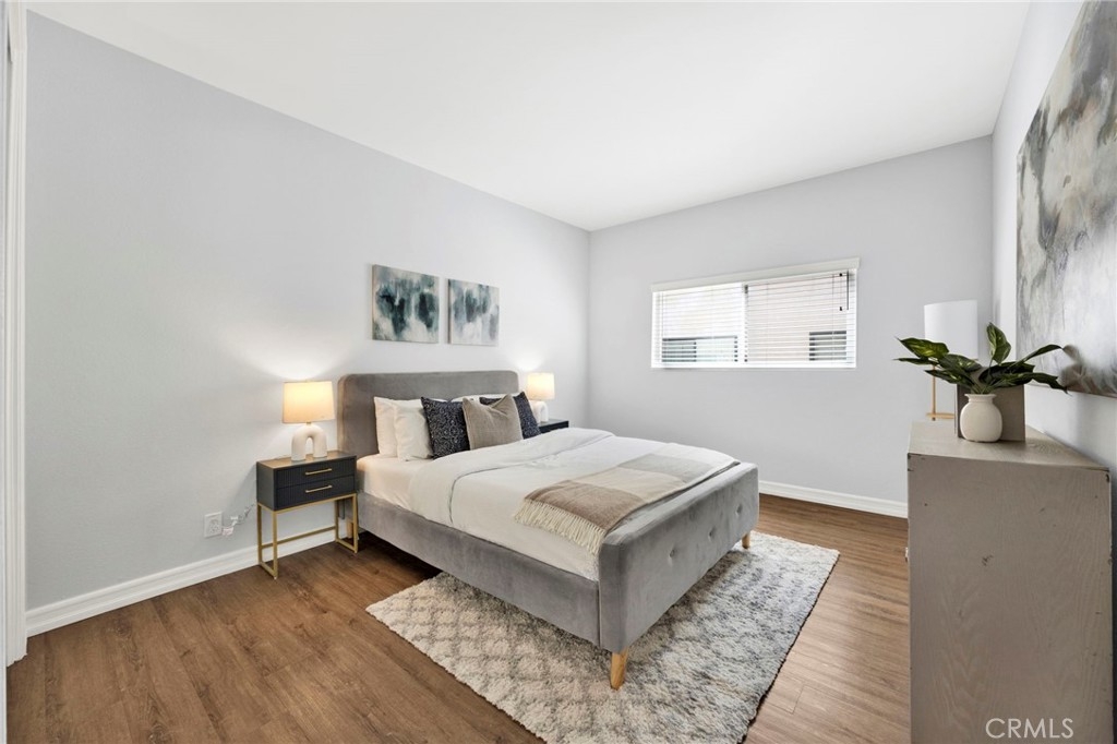 Who said two story is better? Give your knees a break! No more going up and down stairs for laundry, coffee, etc. This stunning, single-level condo is located in the beautiful palm tree lined street of Sherman Way in Lake Balboa. Walking distance from parks, shopping & fun. This community offers 2 SIDE BY SIDE PARKING SPACES plus plenty of guest parking in and around the community, a PRIVATE WELL SIZED STORAGE CLOSET, and plenty of amenities, including a POOL, JACUZZI, clubhouse and SAUNA. The home has DOUBLE-PANED WINDOWS AND SLIDING PATIO DOORS that include a lifetime warranty. The featured 1,500 sqft and minimal upkeep of this unique condo make it perfect for entertaining, raising a young family or simply relaxing in retirement. Enter the front door to find an inviting entryway flowing directly into a vast and open living area with natural light and laminate flooring throughout. Enjoy extra light with NEWLY INSTALLED RECESSED LIGHTS that warmly fill the large main living space, which views the large, customized private patio and opens to the dining room, allowing for mingling while entertaining family and friends. Step into the newly painted galley kitchen with refreshed cabinetry, where daylight streams through a perfectly placed window at the far end of a cozy breakfast nook. A separate laundry room contains A NEW WASHER AND DRYER, extra storage space and room for a deep freezer. On the opposite side of the unit, you’ll find a private, closed-door hallway leading to a roomy guest bedroom and guest bathroom. Towards the end of the hall is the quiet, grand master suite, offering plenty of natural light, linen cabinets and a walk-in closet. Both bathrooms include new modern vanity mirrors. PICTURES DON’T TELL THE WHOLE STORY, come on by and see for yourself. Stop your search today and claim this lovely unit as your own!