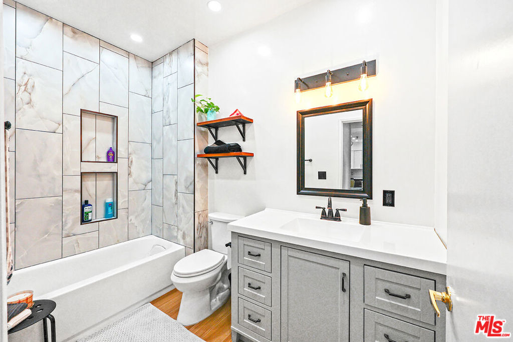 Beautifully remodeled two bedroom condo with two full bathrooms! This great home features laminate hardwood floor throughout, lovely open kitchen to family room with cozy fireplace & serene balcony overlooking mature trees. Master bedroom includes walk-in closet with private bathroom. Second bedroom also has it's own private bathroom & walk-in closet. This lovely smaller complex has a private secure entrance with convenient elevator access & 2 tandem parking spaces. open concept, kitchen and bathrooms have just been remodeled, entire electrical has been upgraded, all water pipes have been replaced with copper. Conveniently located, near shopping centers, freeway entrance, parks