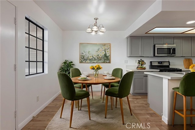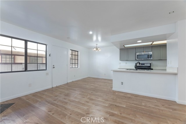 This lower-level 1 bedroom, 1 bathroom condo offers 687 square feet of practical living space with a front patio that faces the courtyard. The living room includes a gas fireplace, recessed lighting and laminate flooring throughout. The kitchen features updated cabinetry, quartz countertops and stainless steel appliances. The bedroom includes a walk-in closet, and the bathroom has been refreshed with an updated vanity, mirror and light fixture. The interior has been freshly painted. Additional features include in-unit laundry hookups, two tandem parking spaces in gated underground parking and a private storage unit. Conveniently located near the 405 and 101 freeways, Lake Balboa Park, Woodley Golf Course, Van Nuys Airport, and Cal State Northridge. Great opportunity for a starter home or for anyone looking to downsize.