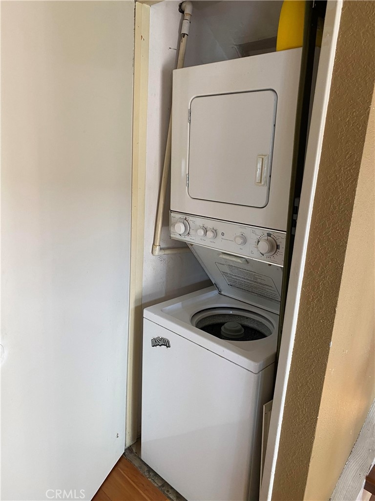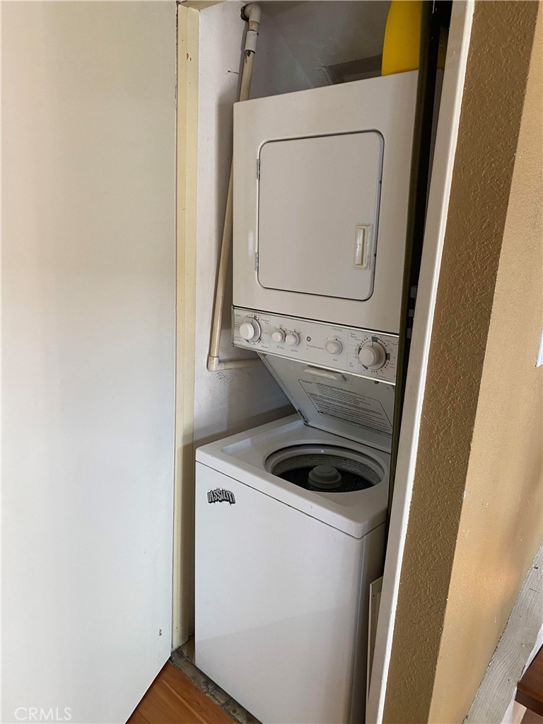 End unit condo features: one bedroom, one full bath, and sizable LOFT space that can also be used as SECOND bedroom at second floor. Laminate flooring throughout. High ceilings, spacious and lots of window light. Balcony off living area. Gas vanity fireplace. Stacked washer and dryer inside unit. Tandem two car gated underground parking and storage locker.