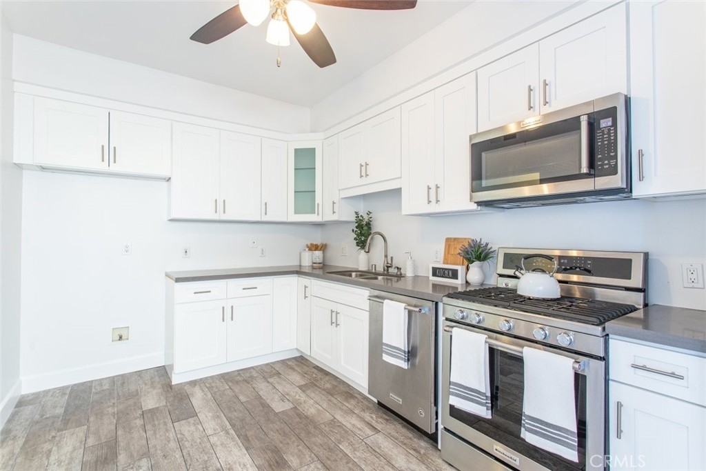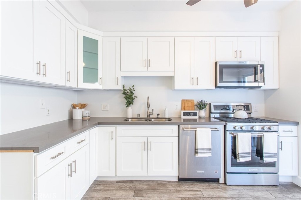 Residing within a quiet, well-maintained community in Valley Glen is a lovely 2-bedroom, 2-bathroom condo! This fully remodeled 1,020-sqft abode is newly painted and includes double pane windows throughout. Inside is a spacious living room with adjoining dining room complete with trendy gray tone tile floors and a large picture window with views of the neighborhood. The nice sized kitchen includes crisp white cabinets, grey tone countertops, and built-in stainless-steel appliances. Both bedrooms include large window coverage to fill each space with warming natural light and built-in closets fitted with mirrored sliding doors. Units are provided with convenient subterranean tandem parking secured in the community parking garage just below the unit. As part of an HOA, the monthly fee covers the cost of water, sewer, trash, intercom system, janitorial services, and common area maintenance. Only minutes away from NOHO West, Trader Joes, Ventura Blvd’s restaurants, shopping, entertainment, and more! Also, in close proximity to nearby schools, parks, markets, and close to major freeways!