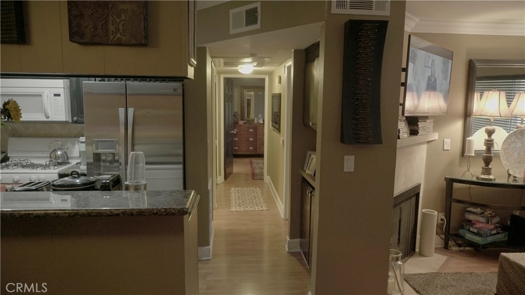 Gorgeous, updated, turnkey “Lake Balboa” 2 bedroom/2bath condo! The moment you step inside you will see true pride of ownership. Cozy, warm tones - amenities include fireplace in living room, custom made wood blinds, laminate hardwood flooring, recessed lighting, crown molding throughout, with new light fixtures, for setting the right ambiance. Granite countertops, stainless steel refrigerator, with freshly painted cabinets finishes off the kitchen. All appliances included; as well as front loading, stackable washer and dryer. The private master suite includes a walk-in closet; ceramic tile in both bathrooms. The condo has central air and heat. 2-car tandem secured subterranean parking. Building includes community pool with indoor gym and sauna. The building is secured and gated. Close proximity to two major freeways, shopping and restaurants. This unit is a must see