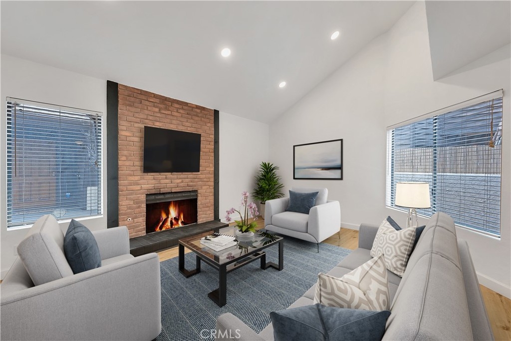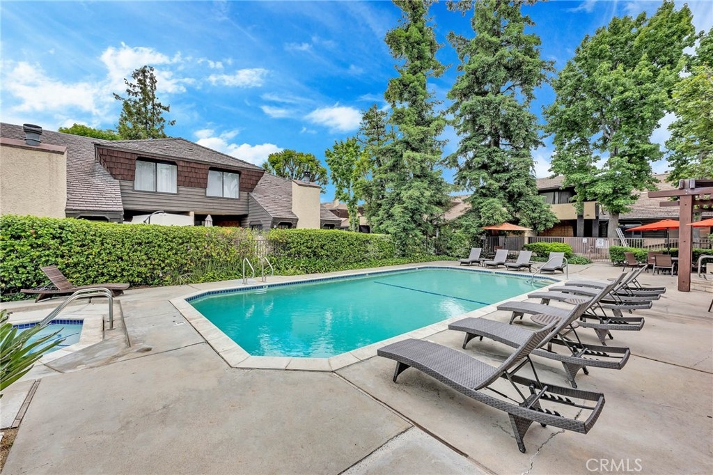Welcome to this beautifully remodeled townhouse that offers a harmonious blend of style and comfort. Nestled in a sought-after community of Parkwood in Van Nuys, this residence presents a prime opportunity for modern living at its finest. Upon entering, you'll be immediately captivated by the inviting living room adorned with vinyl flooring, which radiates a warm and welcoming ambiance. The centerpiece of the room is a cozy fireplace, perfect for gathering around on chilly evenings. The high ceiling adds an element of grandeur and enhances the overall sense of space. The remodeled kitchen is a culinary enthusiast's dream, boasting elegant quartz countertops that perfectly complement the contemporary cabinetry. The adjacent dining area provides an ideal space for enjoying meals with loved ones and hosting dinner parties. The townhouse features two well-appointed bedrooms, providing a peaceful retreat for rest and relaxation. The remodeled bathrooms showcase modern fixtures and finishes, creating a spa-like atmosphere where you can unwind and rejuvenate. Residents of this townhouse will enjoy access to a variety of exceptional amenities. Take a dip in the community pool on hot summer days or indulge in relaxation at the community spa. Work up a sweat in the convenient on-site gym or host gatherings in the club house. Additionally, the in-unit laundry ensures convenience and efficiency. Parking is hassle-free with a private storage area conveniently located adjacent to the parking space, offering ample room for storing belongings securely. Experience the epitome of modern living in this remodeled townhouse. Don't miss the opportunity to own a home that combines contemporary design with an array of desirable amenities. Come see this gem as this home is Priced to Sell! The Key to Your New Home is waiting for YOU!