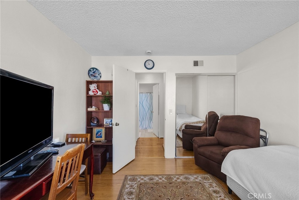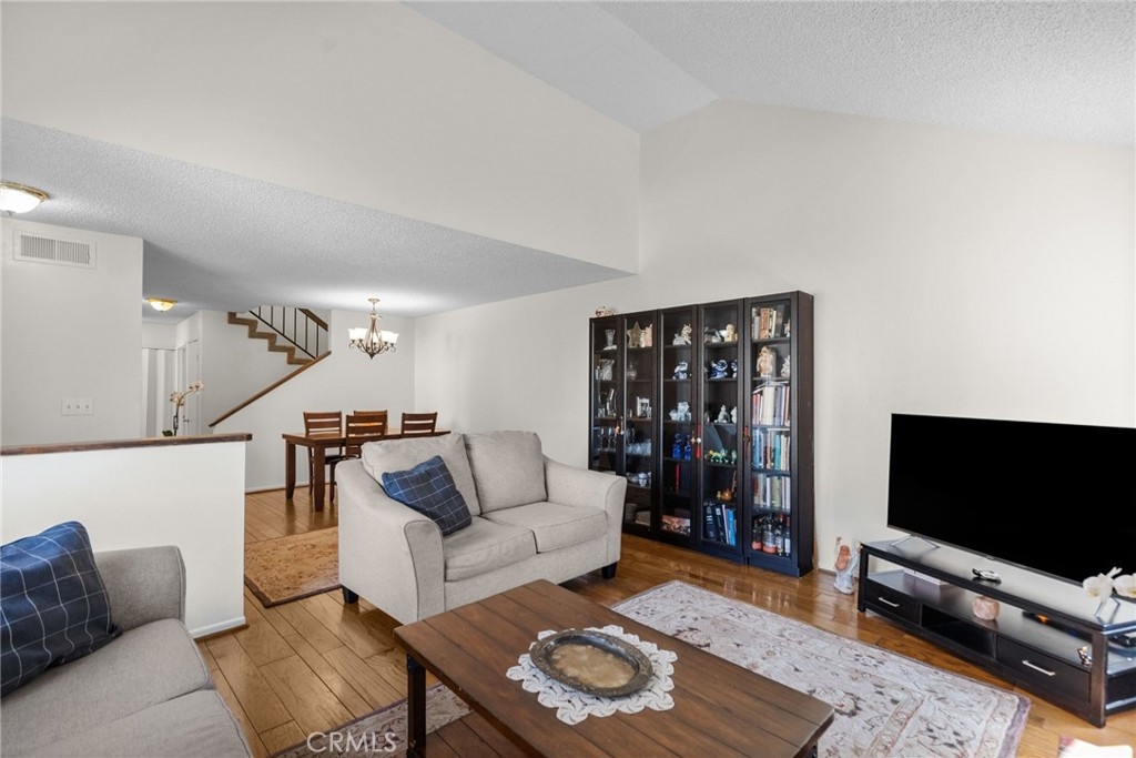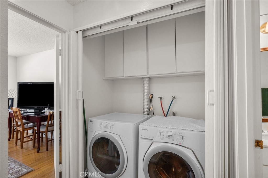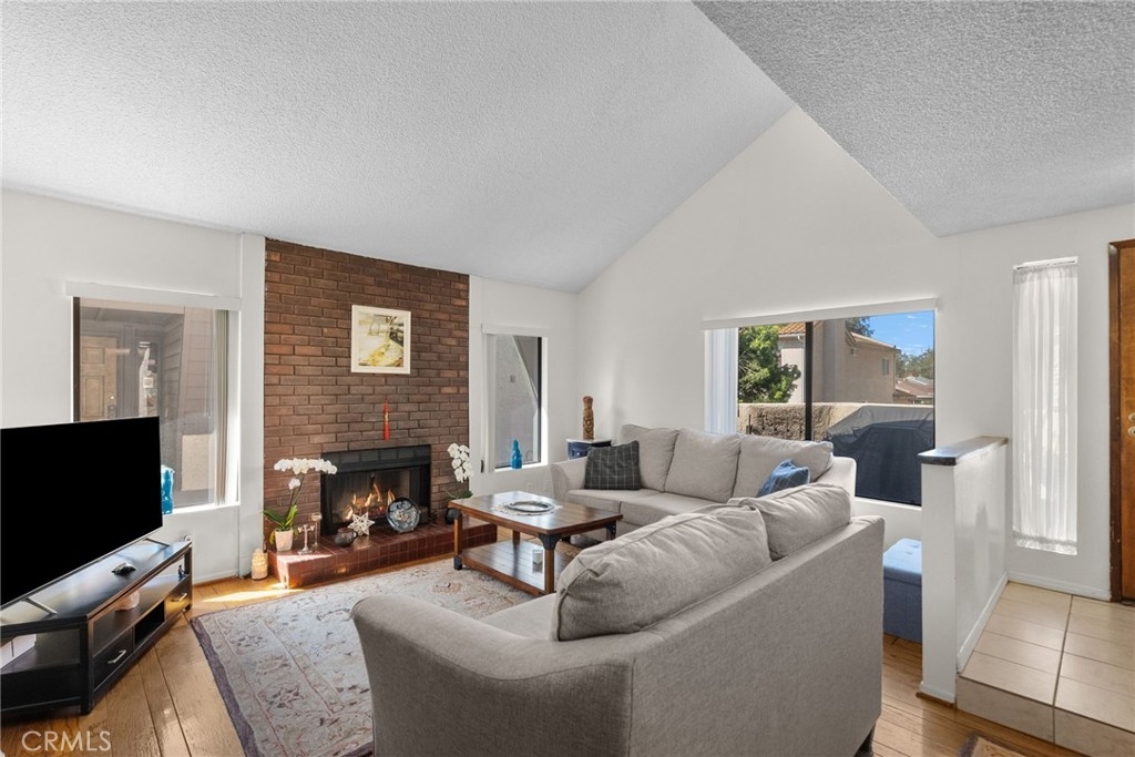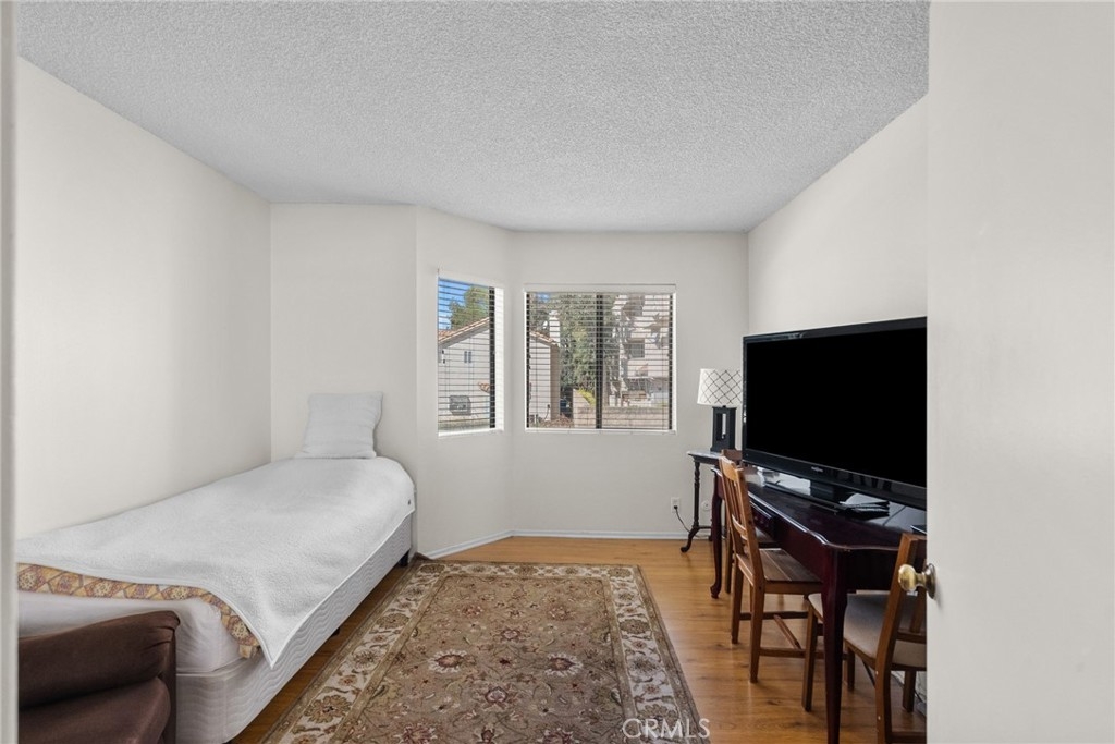 Discover your tranquil retreat in this charming corner-unit townhouse-style condo, nestled within the serene Parkwood community of Van Nuys. A private patio entrance welcomes you to a haven of comfort and convenience, designed for modern living. Step into a sun-drenched living space, where rich hardwood floors lead you through the inviting living and dining areas. A cozy fireplace beckons on cool evenings, creating the perfect ambiance for relaxation or intimate gatherings. The well-appointed kitchen offers both style and functionality. The thoughtful layout features a downstairs bedroom and full guest bathroom, providing flexibility and privacy. Upstairs, the master bedroom opens onto a private balcony, offering your own slice of outdoor serenity. The second upstairs bedroom is generously sized. A well-appointed hallway bathroom ensures comfort for all. The unit also features its own spacious laundry area. Enjoy modern conveniences like a 10x12 private storage space in the garage and community EV charging portals. The secure, gated Parkwood community offers resort-style amenities: a fully-equipped gym, a sparkling pool, a relaxing spa area, a recreation room, and guest parking. Nightly security patrols provide added peace of mind. With two assigned parking spots in the secure garage and easy access to markets, parks, dining, and the 405 freeway, this condo offers the perfect blend of tranquility and urban convenience. This is more than a home; it's Resort Style Living at its best!