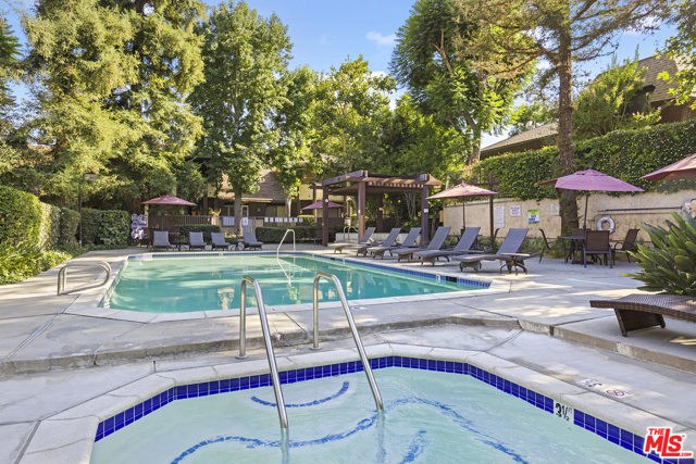 WOW! This Dramatic split-level, 3 Bed, 3 Bath corner end unit has it all! This wonderful townhome is bright and open with beautiful natural lighting throughout, featuring 2 large balconies. The dramatic entry opens to the comfy living area downstairs that features: a gorgeous bright kitchen with conveniently appointed washer & dryer, a generous living room with a gas fireplace and an inviting dining room with a large patio balcony featuring lush garden views. Upstairs is a spacious primary suite with a large balcony. The 2nd bedroom is located on the opposite side with its own bathroom. The powder room and 3rd bedroom is perfect for a home office / den on the entry level. This charming home is located in a stunning complex that features: a resort-style pool with 2 large spas and a recreation room that is perfect for large gatherings. Enjoy a workout at the well-equipped association gym and sauna. Cool down with a walk around the beautifully landscaped walkways. Other features include 2 tandem parking spaces with plenty of guest parking, recently updated [2019] central air conditioning, a [10' x 12'] private storage unit and gated secure grounds. Fantastic central location with quick access to the 405, 101, 170, Lake Balboa Recreation Park, restaurants and grocery stores!!!