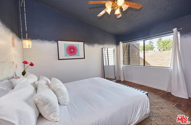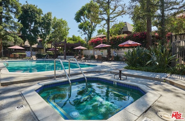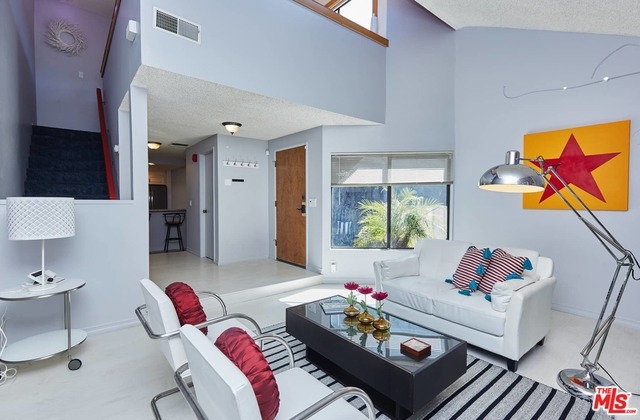 If you think all condominium complexes are the same, think again! From the lush forest-like grounds to the bold lines of the architecture, Parkwood is simply unique among townhomes in L.A. Step inside and be wowed by this home's style, including soaring ceilings in a step-down living room that's awash in natural light and a distinctly modern vibe. At the opposite end of the main level is an updated kitchen with granite counter tops and stainless steel appliances. An adjacent dining area flows out to a spacious, private patio with ample room to barbecue, tend to a potted garden, or sway in a hammock on those balmy summer evenings. The entire upper level features gorgeous hardwood floors connecting a master with a vaulted ceiling and a second bedroom whose open walls provide a view to the living room below. An in-unit W/D, underground parking, and huge 10x12 storage room round out the home's features in this fantastic complex that boasts a pool, 2 spas, sauna, gym, clubhouse and security