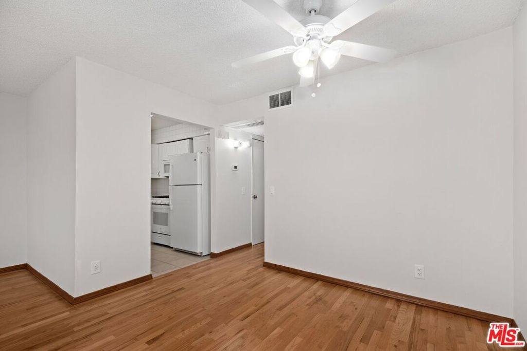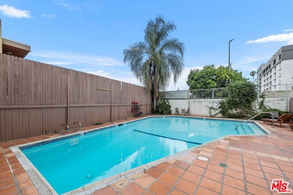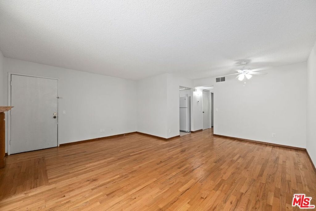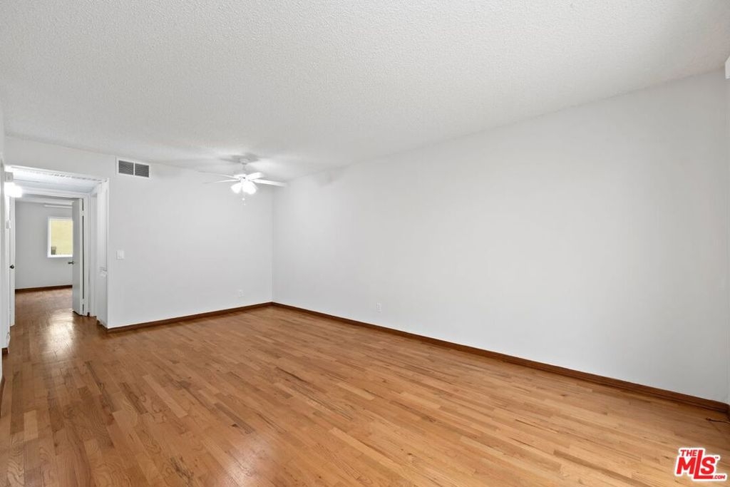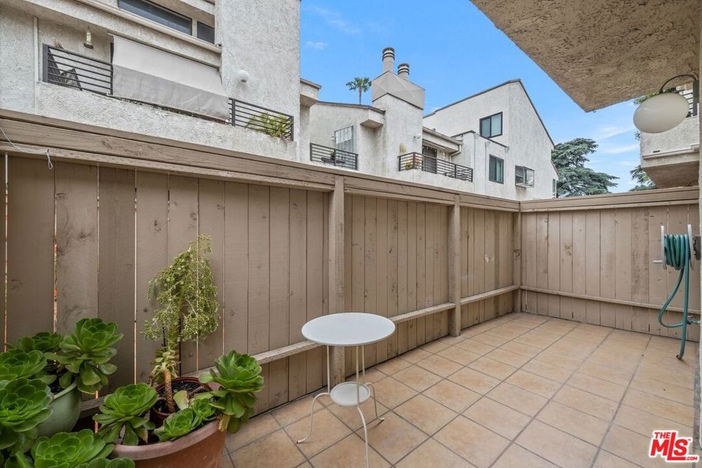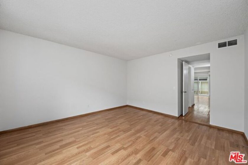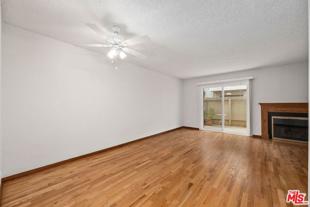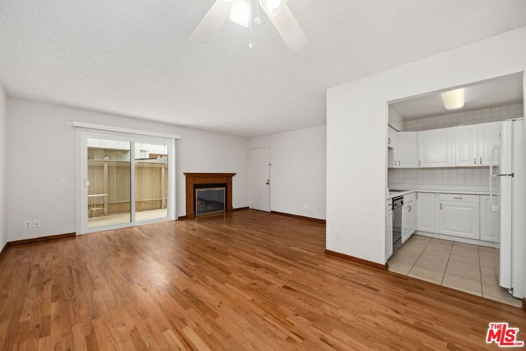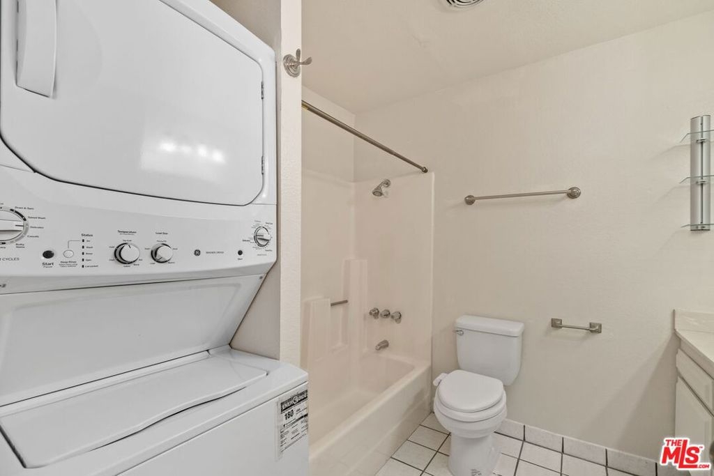 MOVE-IN READY! EAST TO SHOW, VACANT. 709 sq.ft.of living space. Beautiful natural hardwood floors. New sliding glass doors and windows. New stove and oven. 1-year-old refrigerator. In-unit washer and dryer. Large walk-in clothes closet with shelves. Lovely outdoor private patio. Community pool and spa. Gated private tandem parking for two cars. The spa is currently under repair. Conveniently located near 405 access for the commuter and close to dining and shopping areas. Separate storage unit in garage. HOA pays for water and trash.