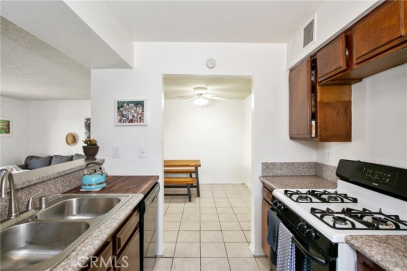 Bright and clean ground level unit in this centrally located complex is a great opportunity for a first time home buyer. The open concept floor plan combines the kitchen, dining area, and living room which has sliding doors that lead to your private patio, offering a spacious indoor/outdoor feel. Features include granite counters, tile flooring, and (new) in-unit washer/dryer. The outdoor patio is perfect for outdoor dining, hobby gardening, or sipping your favorite beverage. Complex amenities include gated access, 2 tandem subterranean parkings spaces seated behind a security gate, guest parking spots, and a swimming pool and spa with a spacious deck. Convenient to the freeway, dining & shopping, this unit is a must see.