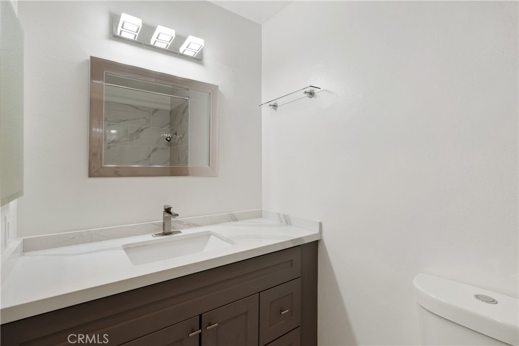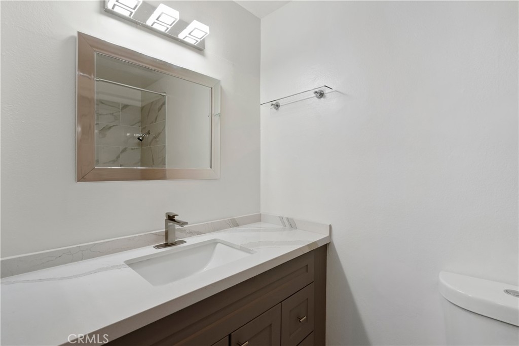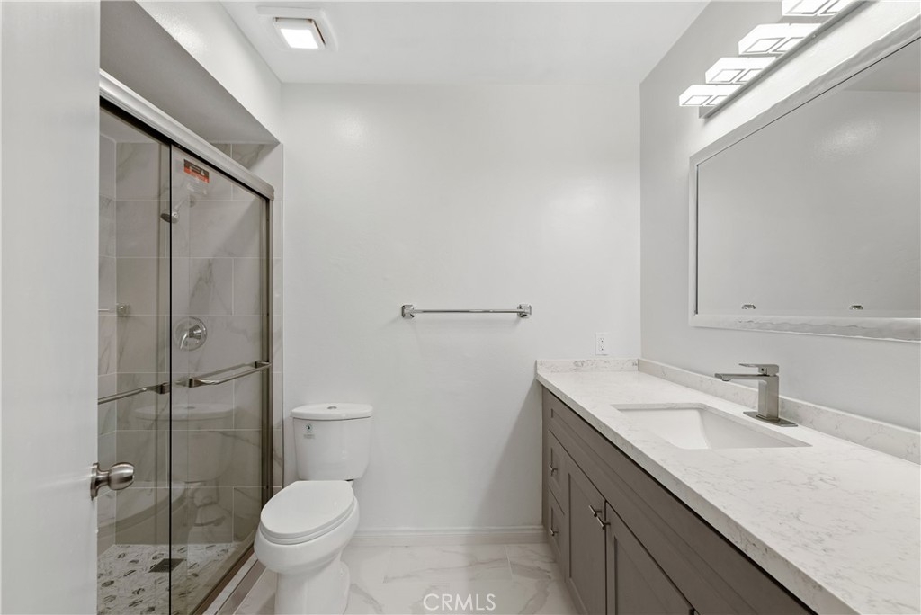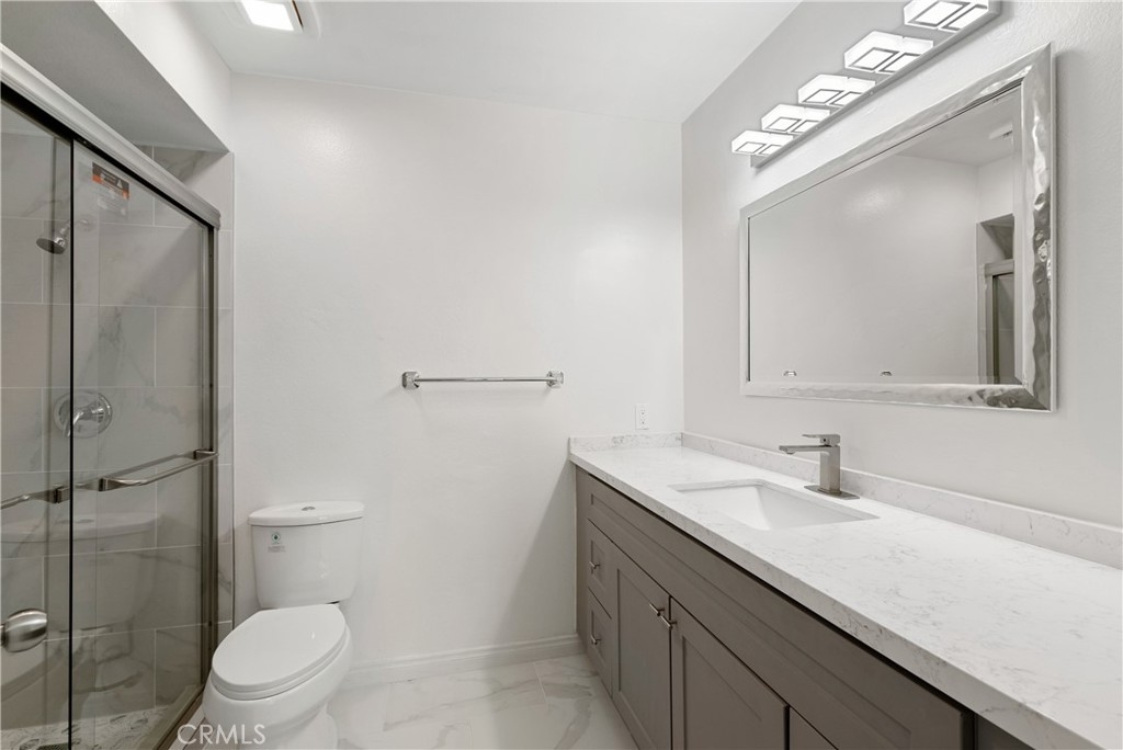This beautiful Sandhill Condominium unit was remodeled in December of 2022 and ready to move in. Two bedrooms, 2 bath, top floor unit is located in a gated community in the heart of Van Nuys with awesome freeway access, minutes from tons of amenities including shopping, restaurants, and ten minutes to CSUN. Upon entry to this second floor unit you are greeted with the open family room with gas fireplace and front balcony. Open to a beautiful kitchen and dining area. Waterproof laminate flooring has been installed throughout most of the home to a stunning kitchen which includes newer Dishwasher, painted cabinets and quartz countertops. Both bathrooms have been updated with newer plumbing and fixtures with Carrara quartz countertops, cabinetry, bathtub in secondary bath and a walk in shower in the master with glass shower doors. There is plenty of light with the added recessed lighting and updated electrical outlets. The front bathroom has laundry hook ups in the unit. All has been done and freshly painted with neutral move-in colors. You will also get 2-tandem secured parking spaces and approximately a 4 x 8 storage in the garage. HOA amenities include a pool and spa area perfect for enjoying those hot California days! Come see and appreciate the attention to detail the seller has put into this home and view it today and be the first to live with this beautiful updated unit.