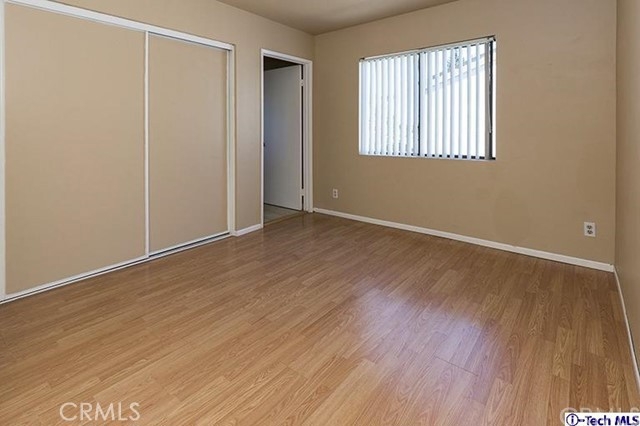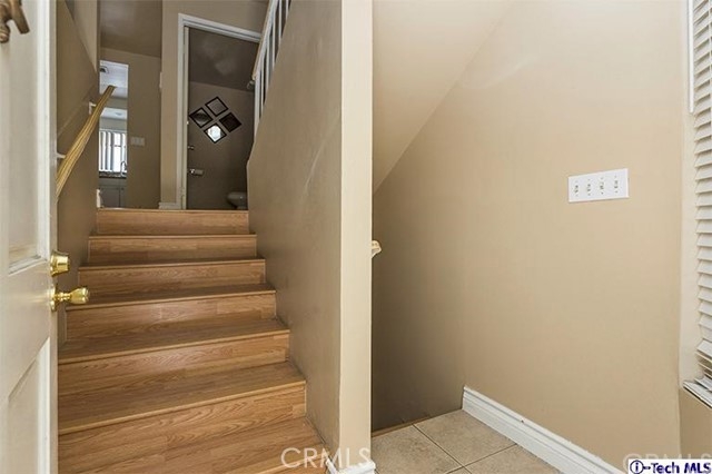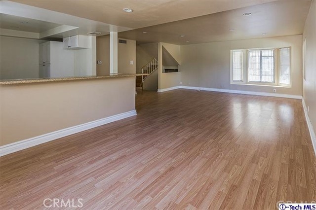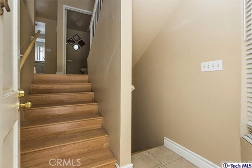 Stunning 2 bed 2.5 bath Van Nuys Townhouse close to shopping & transport. Great corner unit with only one common wall. Entry foyer leads down to the private 2 car garage & upstairs to the modern Living/dining room and the remodeled Kitchen. Other features include laminate flooring, custom baseboards and recessed lighting. The Kitchen has a mosaic back-splash, granite counter tops a range and a dishwasher. The powder room has a modern glass vanity. The entire unit including the stairways are laminated. The Master suite has a balcony, a large closet & a bathroom with tile flooring & a nice vanity and mirror. The Second bedroom also has its own private bath.