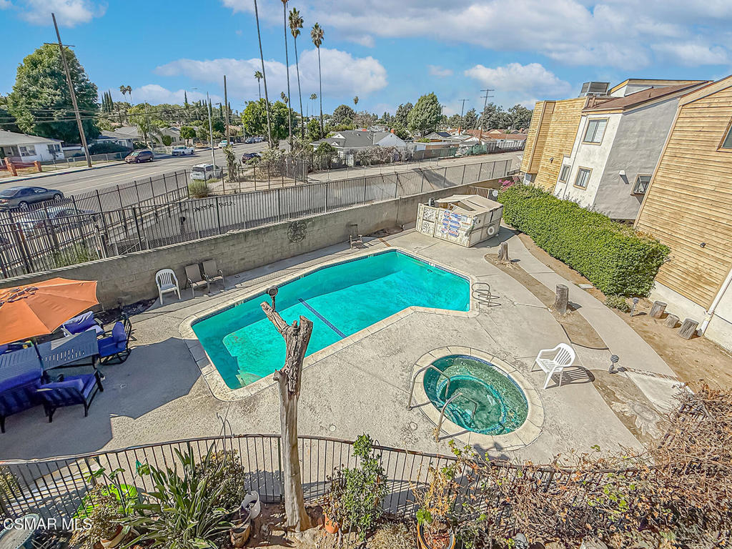 Beautifully Updated Tri-Level Townhome in Gated Community.Bright and move-in ready townhome in the heart of Van Nuys. This updated 2-bedroom, 3-bath home offers 1,090 sq ft of comfortable living space within a private gated community. The main level features wood flooring, recessed lighting, a spacious living room with a bay window, dining area, and a modern kitchen with granite counters, updated cabinetry, newer appliances, wine cooler, and breakfast bar.Upstairs are two bedrooms, each with its own updated en-suite bathroom. The primary suite includes vaulted ceilings, a large closet, and a private balcony. Additional highlights include a private patio with built-in BBQ, central AC/heat, direct-access 2-car garage with laundry, and ample storage. Freshly painted and fully updated. Community amenities include a pool and spa. All appliances included.a