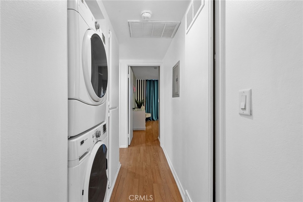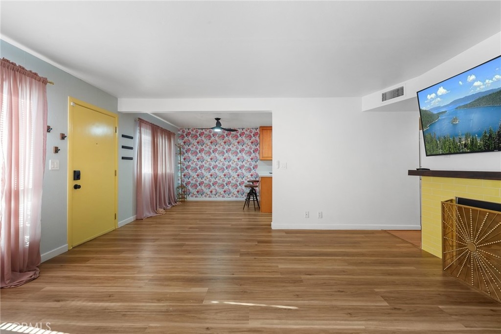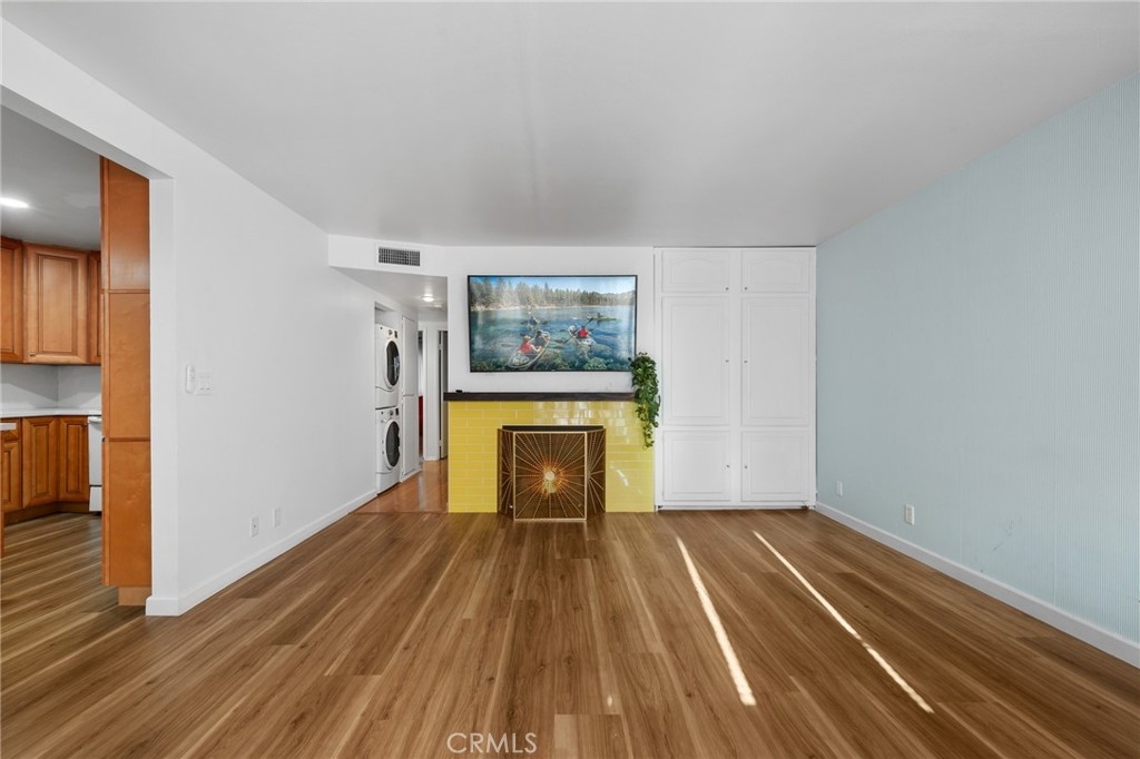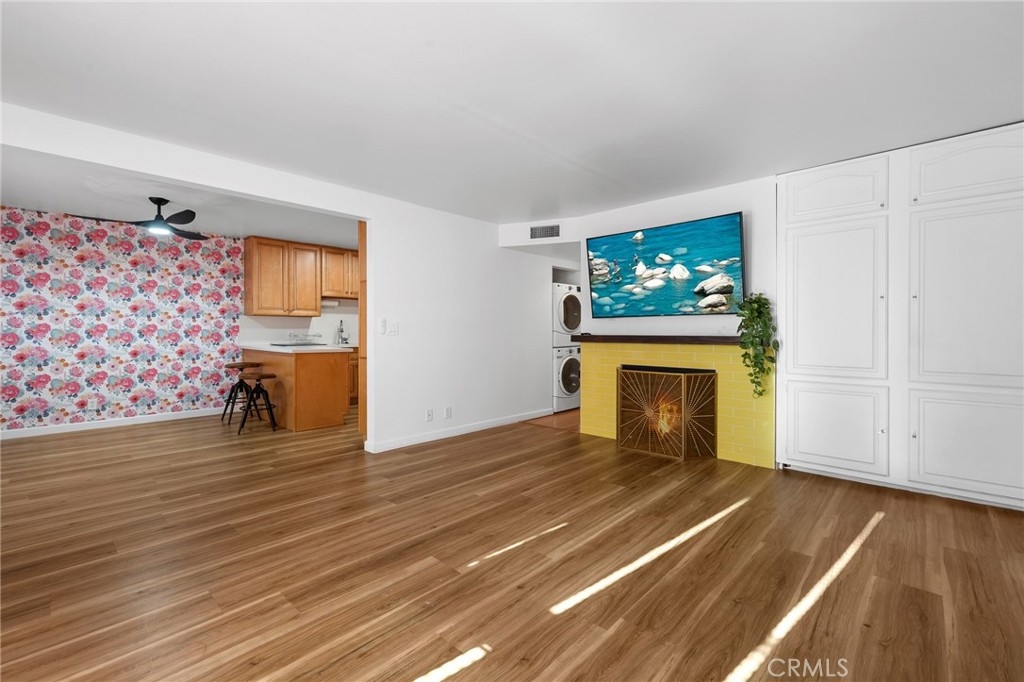Welcome to 15015 Sherman Way #314, a beautifully upgraded top-level condo nestled in the heart of Van Nuys. This spacious 2-bedroom, 2-bathroom unit offers 1,004 square feet of comfortable and stylish living space, thoughtfully designed for both relaxation and convenience. Step inside to a bright and airy living room featuring sleek laminate flooring, a cozy fireplace, custom built-in cabinetry, and a mounted TV that’s included with the home. The open layout seamlessly flows into the dining area and kitchen, where you'll find durable laminate flooring, rich wood cabinetry, abundant counter space, and plenty of storage—ideal for anyone who loves to cook or entertain. Down the hallway, you’ll discover two generously sized bedrooms and two full bathrooms, perfectly situated for privacy. The primary suite is a true retreat with its large walk-in closet, private balcony—perfect for your morning coffee or evening unwind—and a well-appointed en-suite bathroom. Additional highlights include an in-unit stackable washer and dryer, all major appliances (refrigerator, stove, dishwasher) included, and central heating and air. This unit also comes with two assigned tandem parking spaces in a secure gated garage, adding peace of mind and convenience. The well-maintained complex is located close to shopping, dining, public transportation, and everything Van Nuys has to offer. Whether you're a first-time buyer, downsizing, or investing, this move-in ready condo is a fantastic opportunity to enjoy comfortable, low-maintenance living in a prime location.