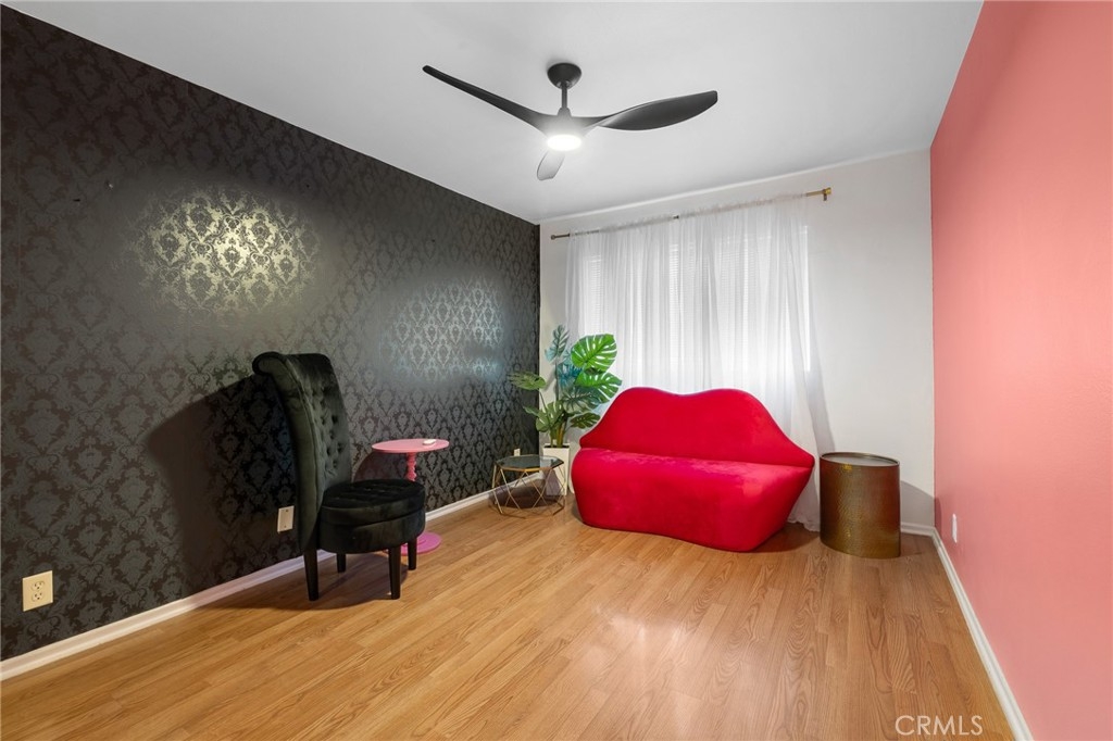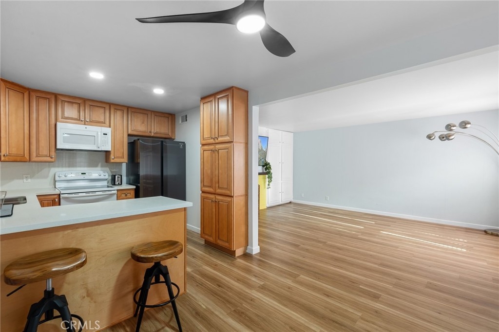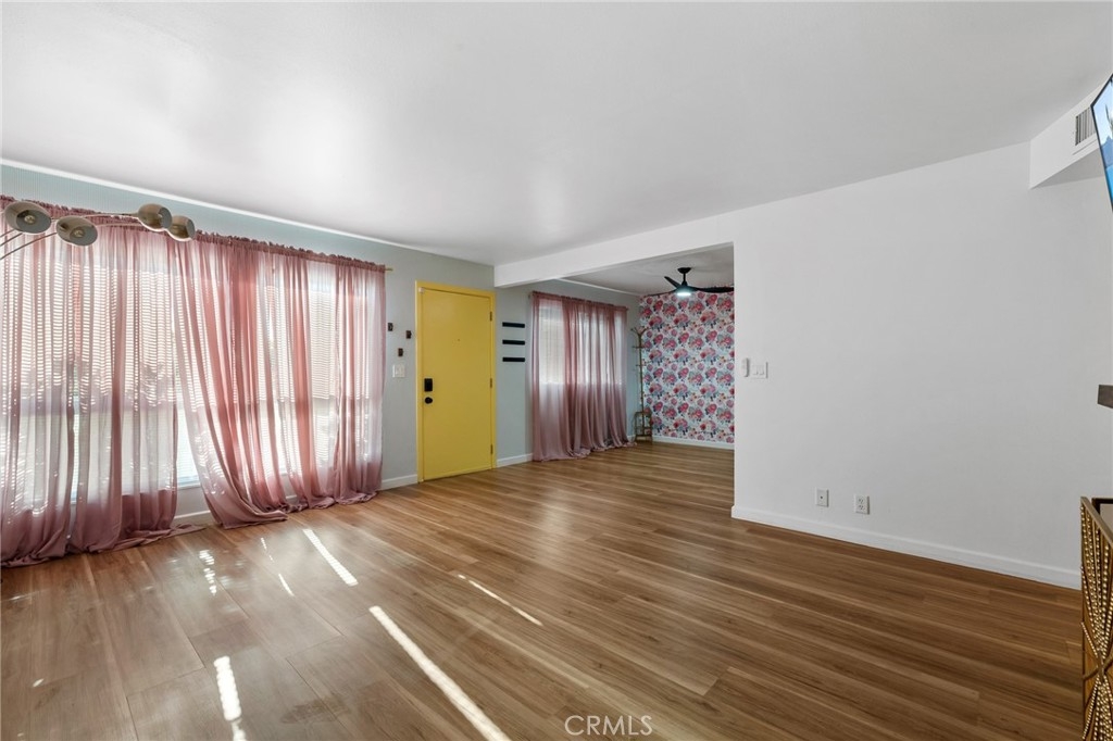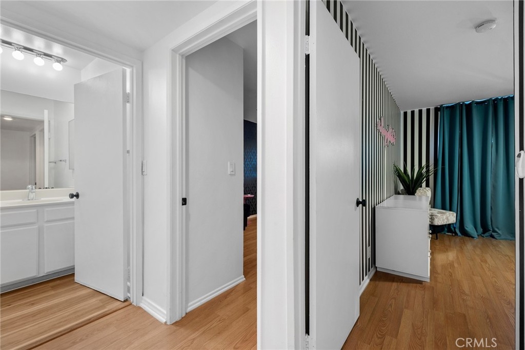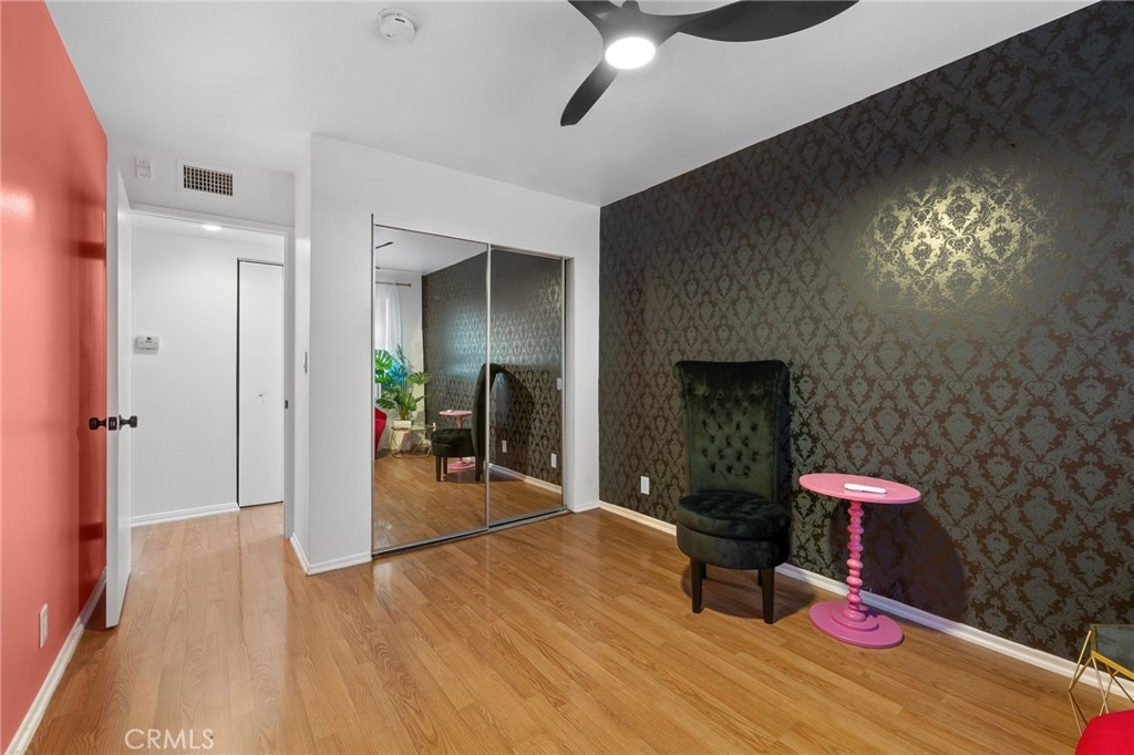 Welcome to 15015 Sherman Way #314, a beautifully upgraded top-level condo nestled in the heart of Van Nuys. This spacious 2-bedroom, 2-bathroom unit offers 1,004 square feet of comfortable and stylish living space, thoughtfully designed for both relaxation and convenience. Step inside to a bright and airy living room featuring sleek laminate flooring, a cozy fireplace, custom built-in cabinetry, and a mounted TV that’s included with the home. The open layout seamlessly flows into the dining area and kitchen, where you'll find durable laminate flooring, rich wood cabinetry, abundant counter space, and plenty of storage—ideal for anyone who loves to cook or entertain. Down the hallway, you’ll discover two generously sized bedrooms and two full bathrooms, perfectly situated for privacy. The primary suite is a true retreat with its large walk-in closet, private balcony—perfect for your morning coffee or evening unwind—and a well-appointed en-suite bathroom. Additional highlights include an in-unit stackable washer and dryer, all major appliances (refrigerator, stove, dishwasher) included, and central heating and air. This unit also comes with two assigned tandem parking spaces in a secure gated garage, adding peace of mind and convenience. The well-maintained complex is located close to shopping, dining, public transportation, and everything Van Nuys has to offer. Whether you're a first-time buyer, downsizing, or investing, this move-in ready condo is a fantastic opportunity to enjoy comfortable, low-maintenance living in a prime location.