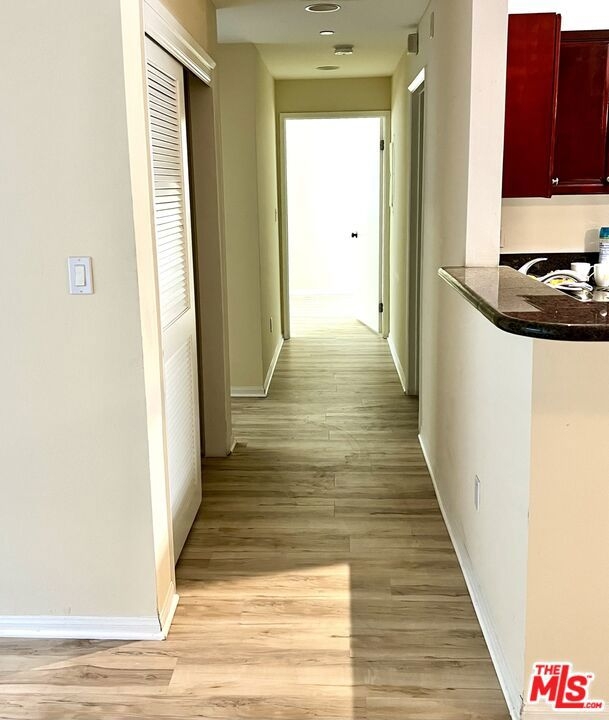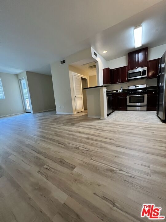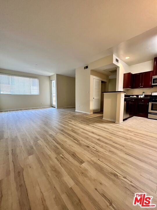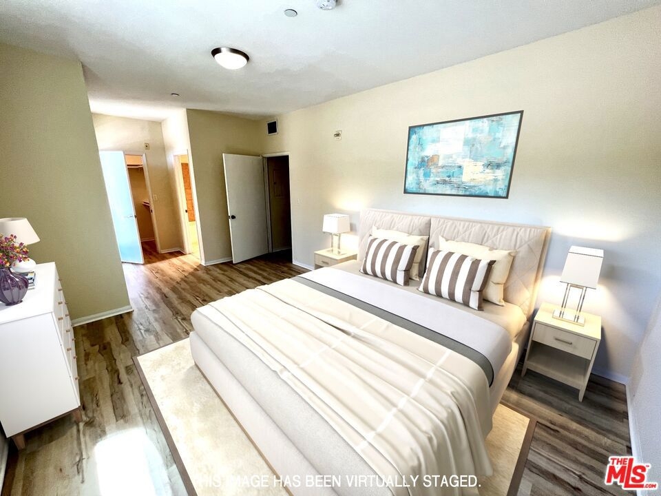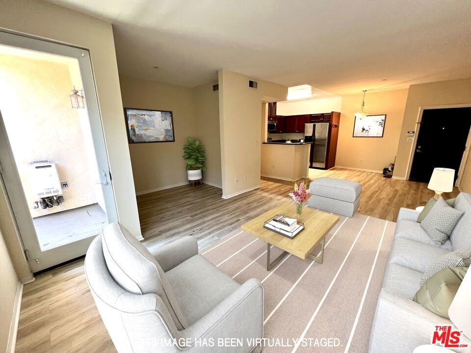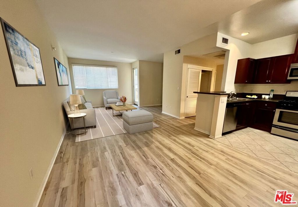 Tastefully updated 2bed 2bath 1,110sqft of living space condominium highly desirable lower level unit just few minutes away from freeways shops bars and restaurants at Ventura Blvd. The living room features an abundance of natural light, open floor plan with brand new laminate floors throughout, vaulted ceilings and balcony which makes this unit more relaxing. Open concept floor leads to dining/upgraded kitchen with granite counter top and stainless steel appliances which are included with the unit! The large primary bedroom also includes a private balcony with en suit bathroom and specious walk-in closet. Great size second bedroom boasts plenty of natural light, mirrored closet doors and direct access to full bathroom. This gated and very well maintained complex has reasonable HOA dues which includes water, trash, gym, game and rec. room and more! Two tandem parking spaces in the garage. This marvelous unit won't last long.