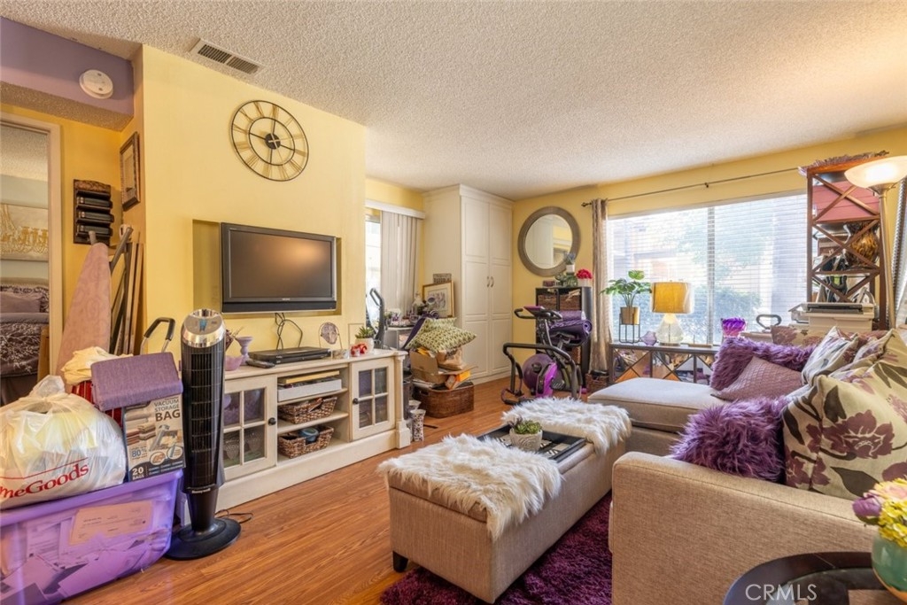 Welcome to 15425 Sherman Way #109 in the Heart of Van Nuys! Get ready to be impressed by this charming 1-bedroom, 1-bathroom condo, ideally located in the heart of Van Nuys. With a comfortable 580 square feet of living space, this lovely unit resides within a well-maintained community. As you enter, you'll find a spacious living room featuring hardwood floors, inviting you to relax in its warm and welcoming ambiance. Natural light streams through the window and sliding door, which opens to your own private balcony. The well-appointed kitchen is a chef's dream, boasting modern appliances and ample storage and counter space for culinary adventures. In the bedroom, you'll discover plush carpeting underfoot and a mirrored closet to meet your storage needs. The well-appointed bathroom includes a convenient shower-in-tub design. This condo is part of a fantastic community with a wealth of amenities that include meticulously maintained grounds, a sparkling pool, a relaxing spa, and a fitness center. Your unit also comes with the added convenience of 2 covered tandem parking spaces. Situated in the heart of Van Nuys, you'll relish the close proximity to the best shopping, dining, and entertainment that the Valley has to offer. This is the perfect place to enjoy the vibrant and exciting lifestyle of the area.