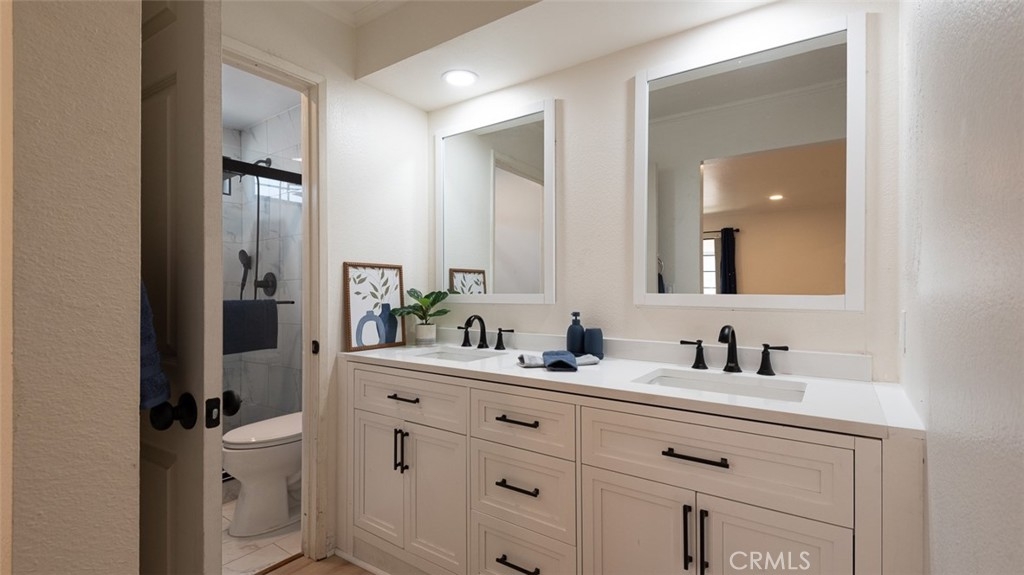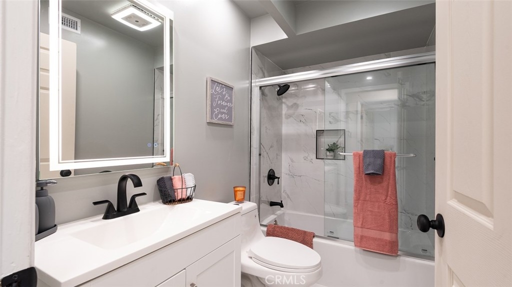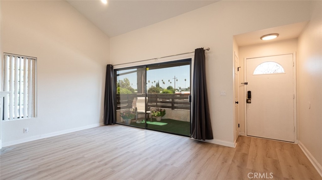 Great new price! This beautifully updated end unit condo located in the desirable Lake Balboa community is waiting for you. As you enter the open concept living space, you are welcomed by how it feels so light and bright. Vaulted ceilings with recessed lighting and the expansive glass door that takes you out to the deck, where you can enjoy views of the pool area or simply a place to plan that next BBQ. A corner gas fireplace will also provide that cozy feel. As you move through a nice-sized dining room with custom lighting and into the newly updated kitchen, you see the elegant white Shaker cabinets, quartz countertops, marble-style tile floors and built-in stainless appliances. There is a five burner LGT gas stove, microwave, dishwasher, farmhouse sink and state of the art side by side refrigerator that complete this modern kitchen. Through the hallway is a newly finished bathroom offering tub/shower, sink cabinet, lighted mirror, the latest tile surround and flooring with easy access to the secondary bedroom as well. The large master ensuite bedroom offers mirrored closet doors and custom built-ins. As you enter the gorgeous bathroom with double sink cabinets and separate stall shower with frameless doors, there is a feeling of tranquility. Additional features of this lovely home are new light wood-style flooring throughout, inside stackable laundry closet, recessed lighting, newer hot water heater, newer electrical, double tandem detached garage with room for storage and ample guest parking. Close to commute, shopping, restaurants, Balboa Park and more! A must see home!