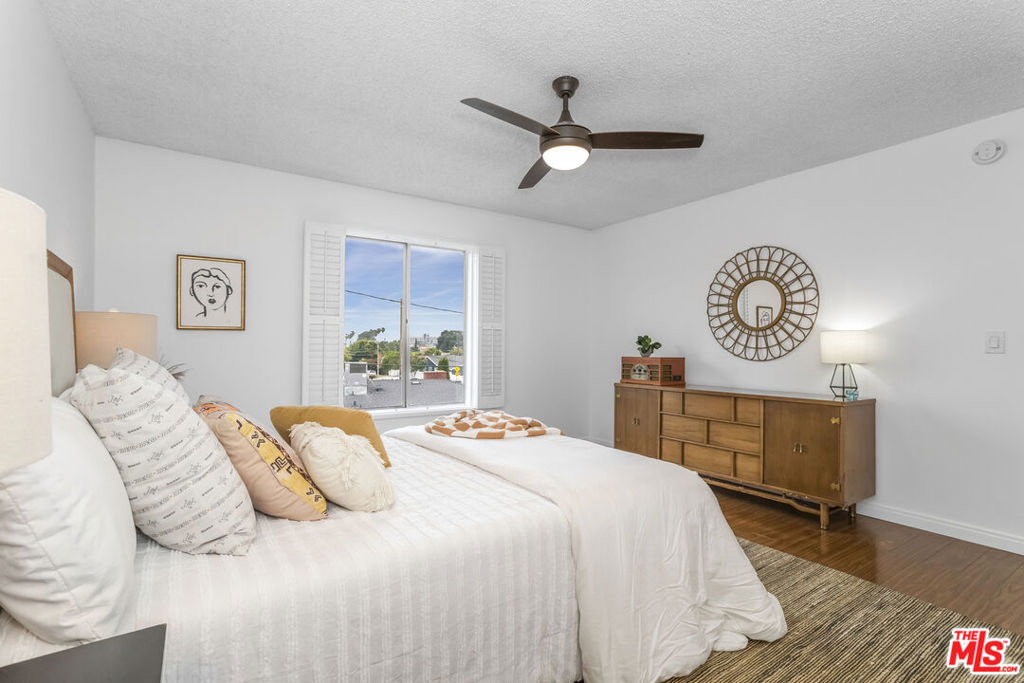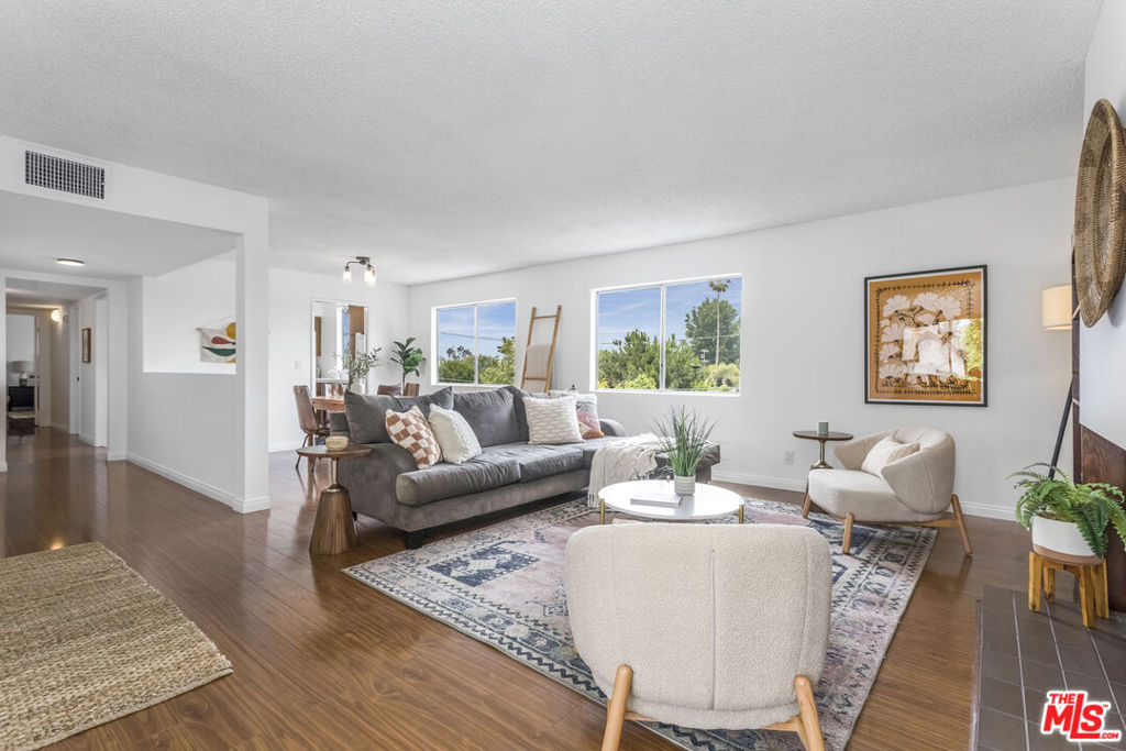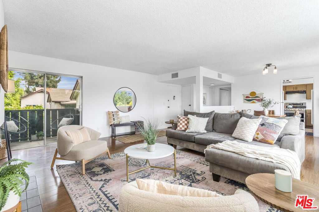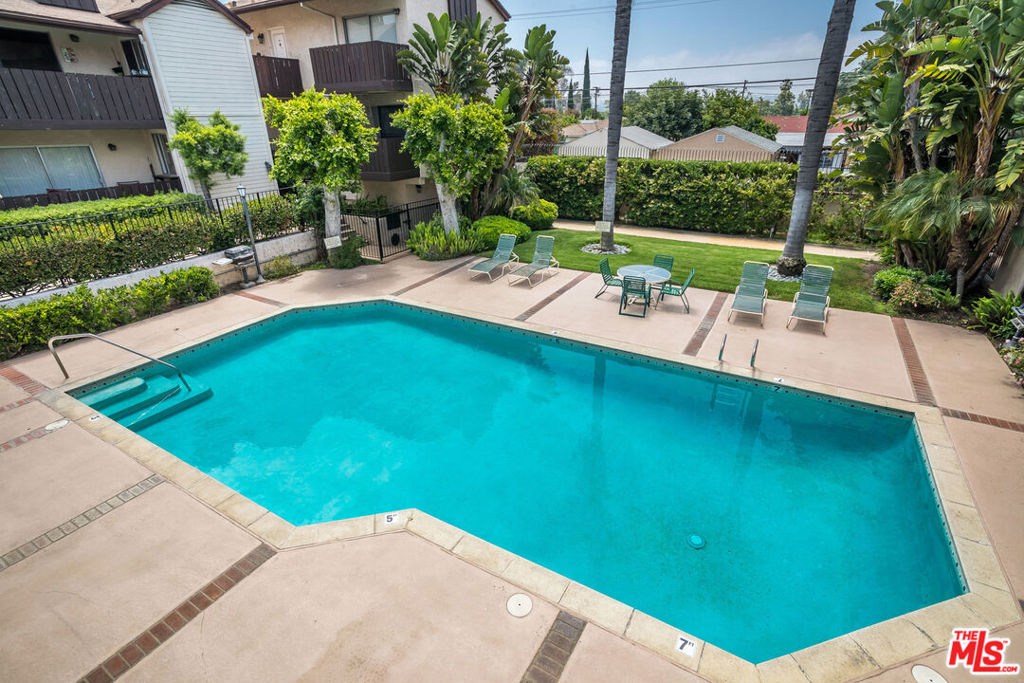 Stylish mid-century modern 2 BA 2 BA condo in the highly desirable "The Colonies" community in prime valley location with easy access to Sherman Oaks, Valley Glen and Burbank. Step into the peaceful, light flooded open-concept living space, complete with living room, cozy fireplace, dining area, and a fabulous eat-in kitchen with ample cabinet space. The spacious feel of the unit and the well proportioned bedrooms, bathrooms and living space are huge highlights of this home. The oversized primary bedroom offers enough space for a king sized bed, dresser and desk, walk-in closet and a spacious bath with double vanity and stand up shower. Bedroom #2 and bath #2 also are also roomy and bright. The open balcony off the living room is perfect for entertaining and enjoying the gorgeous California weather. Other features include in-unit washer and dryer, central heating & air, several closets throughout and a separate storage space down by the garage. Enjoy resort-style perks including a sparkling pool, beautiful landscaping, recreation room with pool tables and 2 assigned secured parking spaces with gated entry. Excellent location close to restaurants, amenities, major studios, parks, public transportation and easy access to the 101 and 405 freeways. Hurry! This lovely home in this well maintained gated complex, where homes rarely come available, will not last!