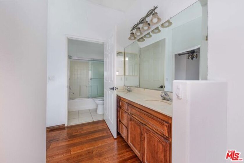 OP FLOOR UNIT WITH VAULTED CEILINGS: Each bedroom contains it's own private bathroom with walk in closet. Vaulted ceiling's, new hardwood floors, and new carpet are featured throughout this condo. Living room with it's own private balcony and fireplace add to the upscale feel of this unit. Worried about parking? Don't be! You have 2 assigned parking spaces in the condo's gated garage. The Condo offers outdoor space with a BBQ and Jacuzzi Spa and an Indoor Recreation Room and a Gym. The unit is located close to Shopping, Dining, and Transportation. Conveniently Located Near the 101, 405, and 170 freeway.