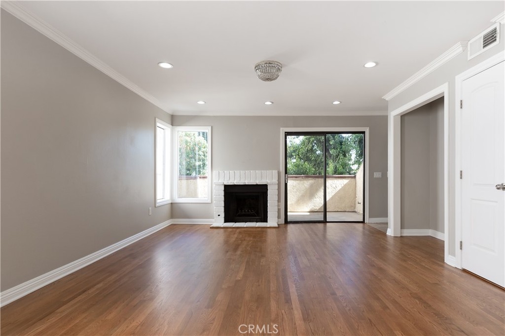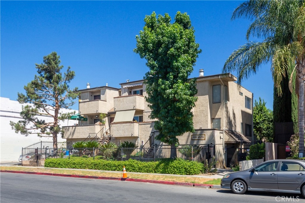 Open and bright two-story condo in the heart of Van Nuys. Amenities include hardwood floors, crown molding, recessed lighting, and large windows. Enter into a large open floorplan living area with fireplace, powder room, and spacious balcony featuring distant mountain views. The storage-friendly kitchen opens to the dining room and includes a dishwasher and gas stove. Upstairs, an open laundry room separates both bedrooms. One of the bedrooms has a private balcony and en suite bath with walk-in shower as well as two large corner windows to let in the perfect amount of natural light. The second bedroom also has an en suite bath. A private two car tandem garage is already set up for storage with built-in shelves. Located in a gated community with pool and spa. Short drive to restaurants, grocery stores, and freeway.