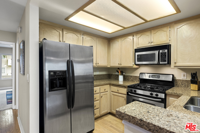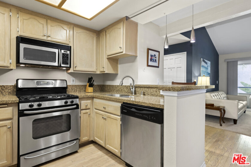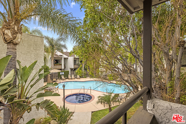 Fantastic upper level 3 Bed / 2 Bath Condo with new sliding door, windows & screens throughout. Plenty of upgrades! Well-maintained gated community with beautiful grounds including a resort style Pool & Spa! Living room has vaulted ceiling with gas & wood burning fireplace. Open updated kitchen with stainless steel appliances and quartz countertops. New central A/C & Heating system were added in August 2020. Stackable washer/dryer added in 2019. Primary bedroom suite and guest bedroom have walk-in closets. Nicely situated with gorgeous balcony view of pool area. Plus, private garage with storage and additional covered parking space!