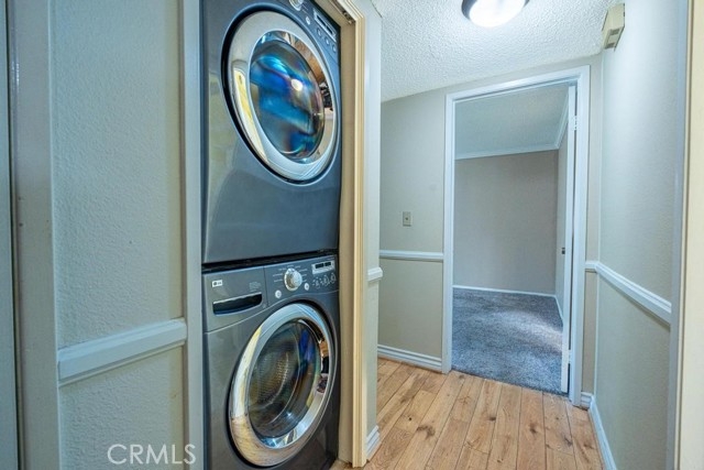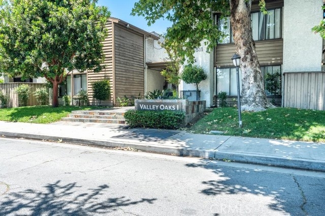 Excellent location at the very back of the complex for this 2 bedroom upper condo in Van Nuys "Valley Oaks" complex! This gated community offers 24 hour security, garages, indoor laundry and close proximity to just about everything in the valley. 2 good-sized bedrooms, one with walk-in closet and 2 full baths. Wood and laminate floors. The living room has a fireplace and sliders to the balcony/deck. Stainless appliances and the refrigerator and stackable washer/dryer both stay. Reasonable HOA includes pool, trash, gate and security.