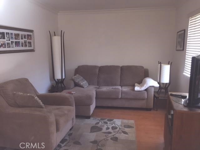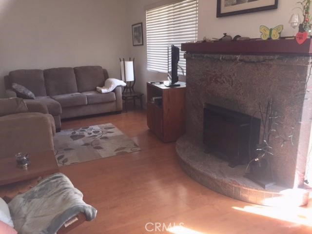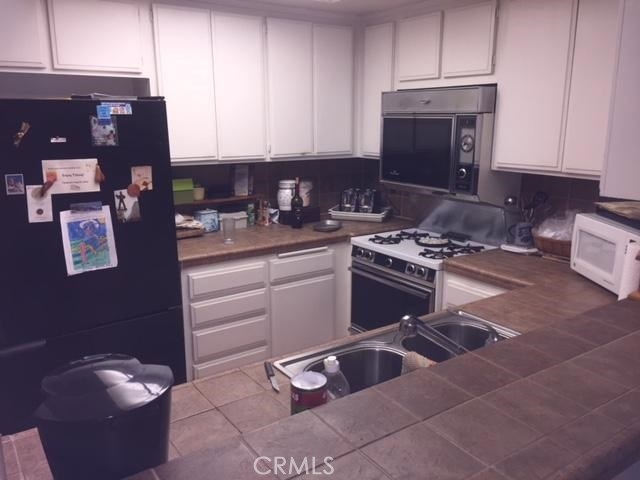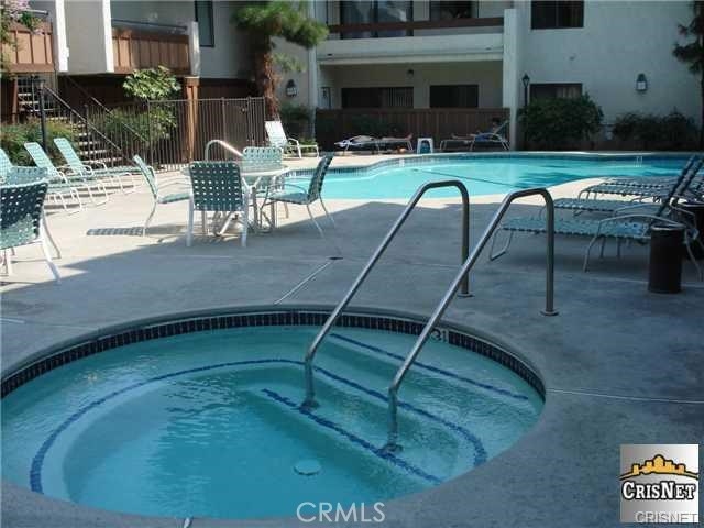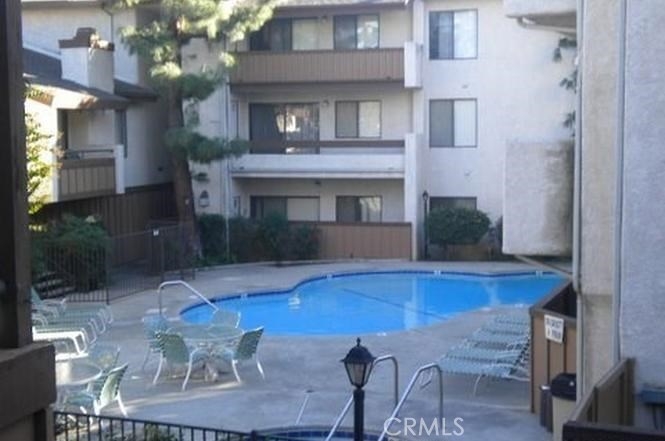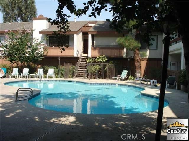 BACK ON THE MARKET - BUYER COULD NOT GET LOAN! Their loss, your gain! This is an absolutely beautiful unit in a gated community centrally located and close to shopping, freeways, entertainment and sports. One story condo with laminate wood floors throughout and a spacious living room with a central marble fireplace with raised hearth. Separate dining room area looks to enclosed patio. Large kitchen with custom tile counters, black refrigerator and dishwasher, and self standing stove with top unit. Lots of counter space with stainless steel double kitchen sink and tons of cabinets. Master Bedroom is spacious with two separate closets with custom built-ins, master bath has shower and tub with enclosed glass shower door. Inside stacked washer and dryer completes this self-contained unit that you will enjoy for many years to come. Security building with community pool and spa, includes 2 parking spaces (one covered). Current renter would like to stay, so it is a great rental.