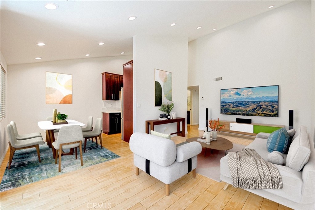Stylish, turn key 2 bedroom 1 bath updated condo in a very centrally located part of Van Nuys close to Kaiser Permanente Panorama City Hospital, shopping and public transportation. Unit features, new windows, new window coverings, vaulted high ceilings in living room with new recessed and fixture Led lighting, an updated kitchen with appliances, updated bathroom, a walk in closet, nice flooring as well as brand new freshly painted interiors. In addition, unit has an attached garage with 2 tandem parking spaces and it's own dedicated washer and dryer space and appliances, plus some storage. HOA amenities include a sparkling pool, a spa, lush landscaping and ample of guest parking.