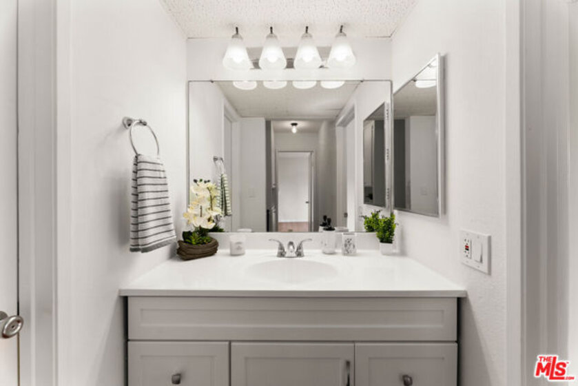 NO MORE SHOWINGS, MUTIPLE OFFERS OVER ASKING! 2 Bedroom, 1.5 bath unit completely remodeled with plenty of natural lighting. Brand new stainless steel kitchen appliances, counter depth refrigerator and freezer, new garbage disposal, new drain under kitchen sink, 2 new toilets, new window blinds on all 3 windows, 3 new window screens and sliding door screen, all new light fixtures except dining room chandelier, reglazed bathtub and shower tiles, replaced trim plumbing fixtures in shower (Shower arm, flange and shower head) and new faucet and drain pop-up in upstairs vanity sink. Central A/C and heat with laminate floors throughout. Private patio, community laundry steps away from unit, 2 covered tandem parking spaces with storage unit and a community pool. This is a must see and will go fast.