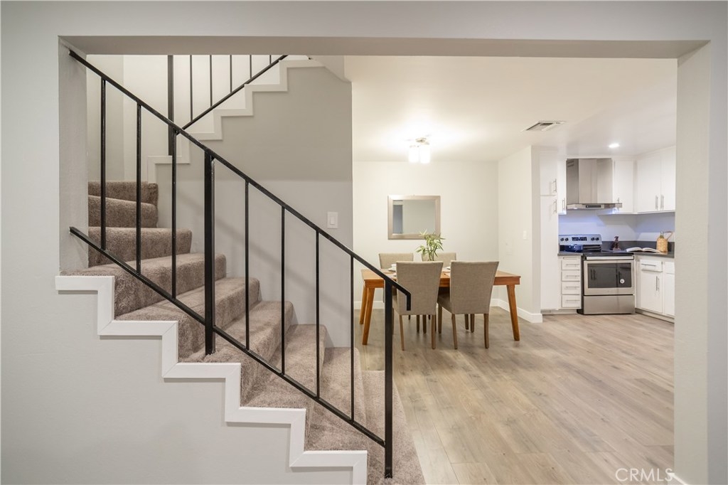 Remodeled 2 bedroom + 2-bathroom two-story Townhome with Designer touches throughout in a Pride of Ownership complex! The cooks' kitchen with Quartz counter tops, white cabinets and new Stainless-Steel Appliances and large pantry! The large living room features L.E.D. recessed lighting, double pane sliding glass doors that lead to a private patio. There is also a cordial dining area, light and bright bathroom plus a large storage area on the first floor. The second floor offers a Master Suite with two large closets and vaulted ceilings. The is another bedroom and plenty of room for storage on the second level. Other features include: smooth ceilings, decorative flooring, and Central A.C./Heat. There are many energy saving and convenience features such as a wireless thermostat, L.E.D. lighting and some low flow plumbing fixtures. There is an oversized attached two-car carport and laundry facilities as well! The well-maintained community offers a swimmer’s pool, and recreation room surrounded by lush landscaping. This home is centrally located and close to shopping, schools, parks and easy freeway access - this one won't last!
