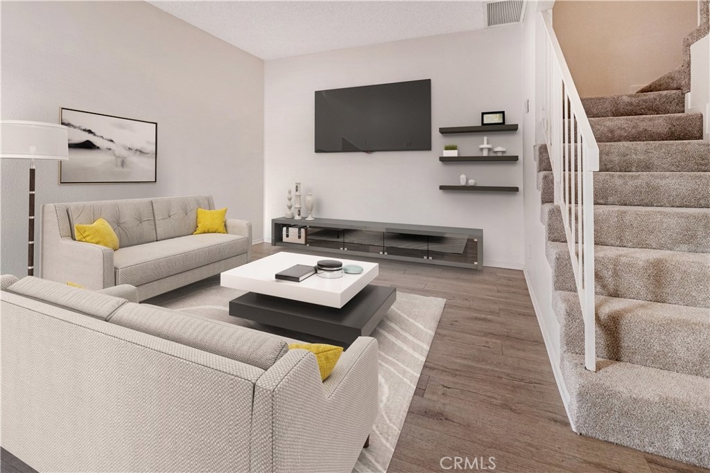 Ready to move in!. This cute 2 bedroom, 1.5 bathroom unit is freshly painted. Owner just completed new flooring with wood laminate downstairs and carpeting upstairs. The HVAC system was installed in 2015. A new sliding glass door was installed in the kitchen. The unit includes two parking spaces. Private, gated patio. There is a community swimming pool and several laundry areas. Some of the photos are digitally staged. HOA fees cover, maintenance, insurance, water, trash