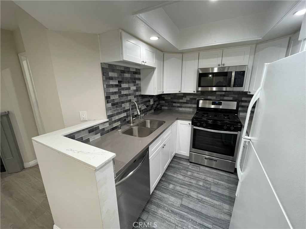 Welcome to this fully remolded condominium in Van Nuys Downtown. Just couple of blocks from Orange Line Busway, Costco, 405 FWY. This unit offers open living and dining room with remodeled kitchen, bathrooms, step out onto private patio. Unit has separate storage space . HOA fee includes common are maintenance, trash, water and sewer services. Building has secured podium parking structure. Conveniently located within a short distance to shops, restaurants, parks, and public transportation.