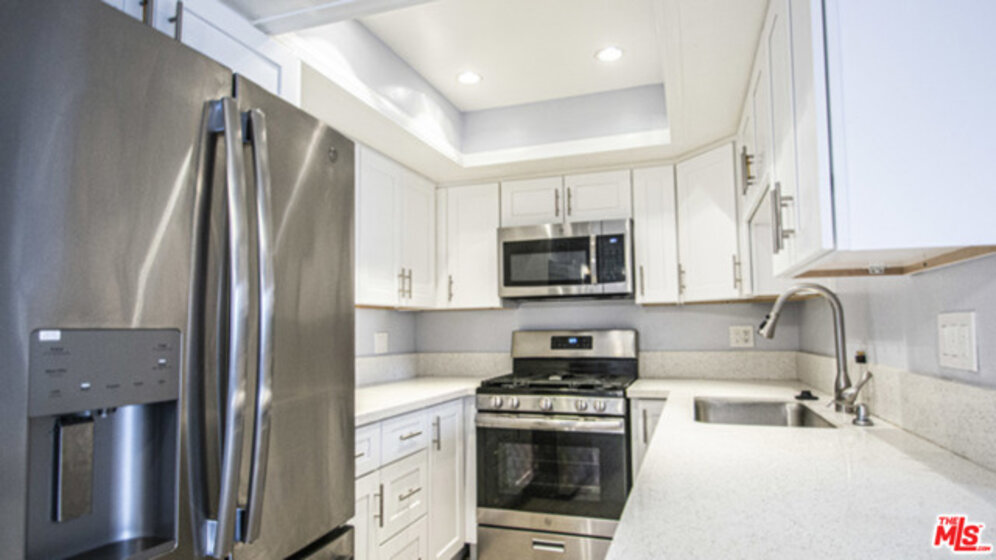 Sherman Oaks adjacent. Remodeled and tastefully upgraded unit located in the city of Van Nuys with close access to 405, 101 freeways. This convenient floor plan offers two very private bedrooms, modern kitchen with quartz counter tops and newer appliances, cozy living room with recessed lighting, inviting fireplace, laminate floors, new central A/C and heating, good size balcony....The building is equipped with an elevator, trash shooting system and security cameras with controlled access to building. There is separate storage facility, one individual space per unit and two tandem parking spaces 36. Appliances, refrigerator, washer & dryer included in the sale. HOA covers Earthquake Insurance. Buyer is advised to independently verify the accuracy of all information with appropriate professionals.