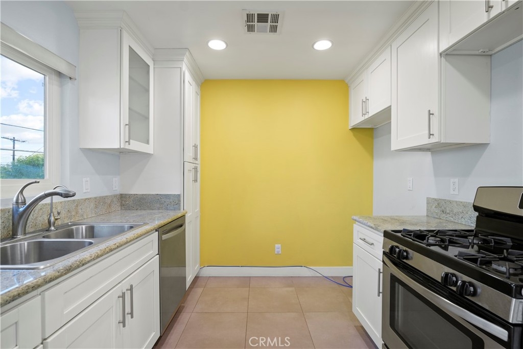 Beautifully upgraded condo FOR SALE located in the heart of Van Nuys! Upper-level unit in a secure and small development. With an open floor plan, this home features wood-like flooring, dual pane windows & slider throughout, an updated HVAC system (2010), smooth ceilings, recessed lighting, and a fully updated kitchen with Stainless Steel appliances, updated cabinetry, fixtures, and granite countertops! The living room is very spacious with a cozy fireplace and is ideal for family gatherings. The Primary bedroom is large with a walk-in closet, secondary closet, and has its own updated En-Suite bathroom with skylight. The secondary bedroom is also nicely sized with good closet space. The Hallway has a full bathroom with a skylight and is also renovated! The gated garage offers 2 designated parking spots & extra storage. Located within close proximity to excellent shopping, dining, parks, local schools & easy 405 freeway access. Low H.O.A. dues with hot/cold water and trash service included! This is a beautiful, move-in-ready home that you should hurry to see today!