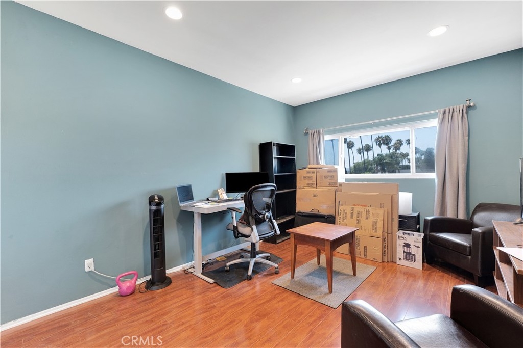 Back on the market! Top floor unit with pajm tree views from the balcony in a controlled access building. Don't miss this beautiful, two bedroom, two bathroom condominium centrally located in Van Nuys, adjacent to Sherman Oaks. This unit has new laminate floors in both bedrooms and fresh paint in the bathrooms. The master bedroom has a huge walk in closet with built-ins. The kitchen has a stackable washer/dryer closet. Living room has a decorative fireplace. Other features include dual pane vinyl windows, recessed lights, and smooth ceilings. Elevator Access to 2 assigned side by side parking spaces in gated garage. Condo Dues Cover Earthquake Insurance, water, sewer, trash, security cameras, landscape, common areas, gym, meeting room, heated pool and maintenance. Close to restaurants & shopping, near the Orange Line Busway, 101 or 405 Freeways! and Sepulveda Basin Recreation Area, which offers golf, cycling, pedal boats and a sports complex!