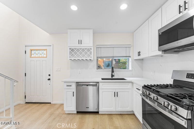 Incredible Opportunity, Knocking on your Door!! Don Not Let This Turnkey Townhouse Go! Including but not limited to: 2 Beautiful Bedrooms 2 Baths,2 Car parking, completely remodeled in the past 2 Years! Offering Top-of-the-Line stainless steel appliances, including Fridge and Standing Washer and Dryer!! Lots of Light! End Unit, securely gated building built in 2008! Private balcony, Laundry in unit, centrally located, Outdoor Picnic/BBQ Area, close to shopping, Entertainment and easy access to FWY! To top it all off Low HOA fees! A Must See!
