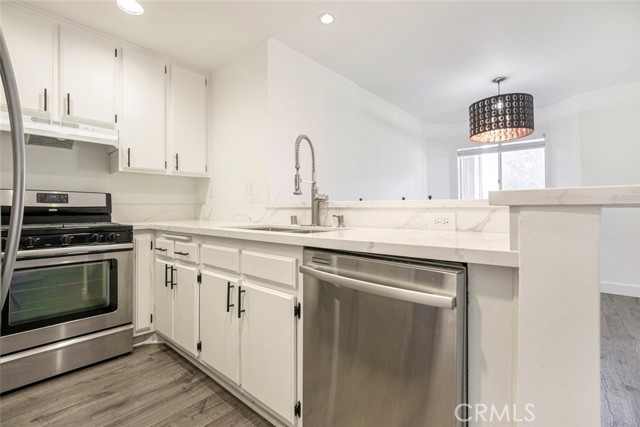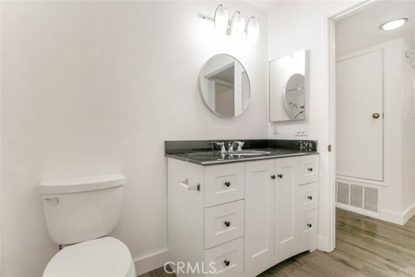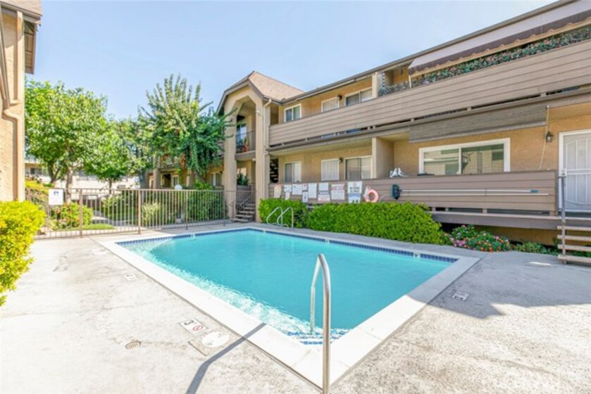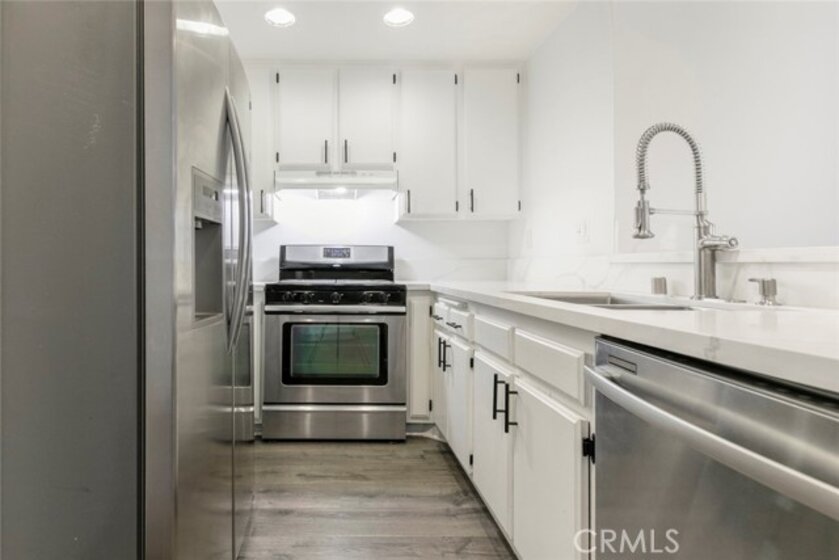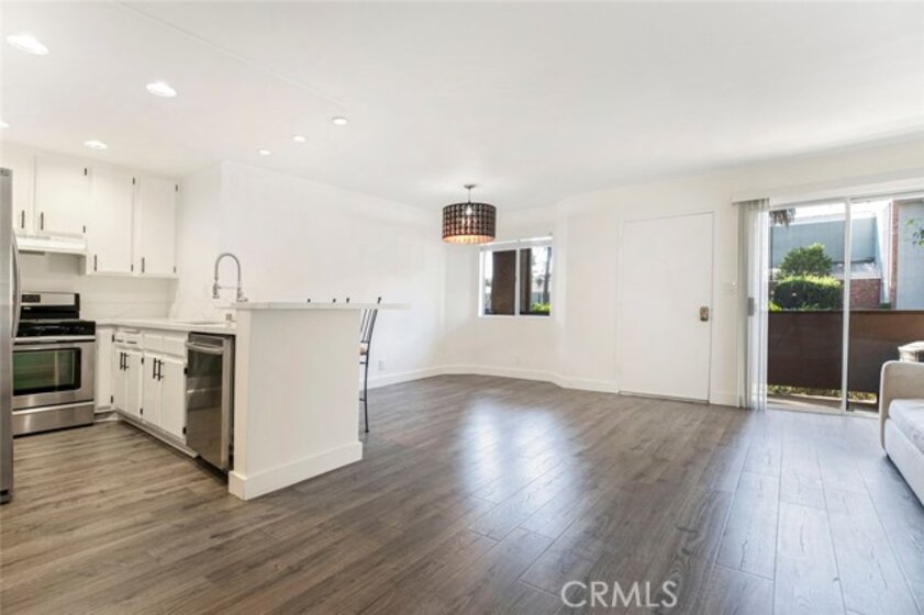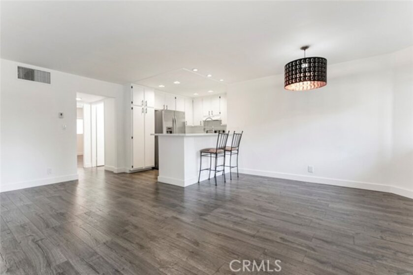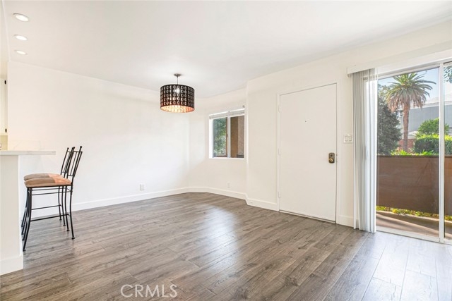 Location, Location. Fully Upgraded 2 bedrooms and 1.5 bathrooms condominium, 837 sq ft. Corian Counter tops, recessed lighting. hardwood floors, mirror sliding closet doors. Private Laundry room with washer and dryer. next to 2 car garage tandem underneath condo. Gated community with main entrance and small gate right in front of unit, 3 steps away from Condo entrance. Excellent location East of 405 Freeway.