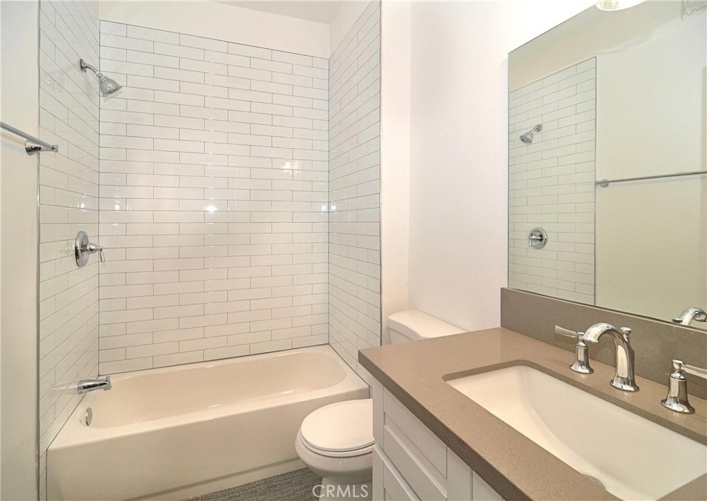 Grab this beautifully updated, move-in-ready condo nestled in a charming complex with low HOA dues at an attractive discount before it’s gone! Last model match in the complex sold for $466,000 in inferior condition. Tastefully remodeled throughout, this home features fresh interior paint, new plush carpet in the bedrooms, and stylish newer plank flooring for a modern touch. The remodeled kitchen boasts newer white shaker cabinets, sleek quartz countertops, and stainless steel appliances. The open-concept layout seamlessly connects the spacious living room, dining area, and kitchen highlighted by a cozy fireplace that adds warmth and charm to the space. This rare and versatile floor plan includes dual primary suites on opposite sides of the home, each with a walk-in closet and private, fully upgraded bathroom—ideal for roommates or guests. Both bathrooms have been tastefully updated with newer shaker vanities, countertops and tile. Conveniently located on the first floor with easy stair access, this unit offers added accessibility and comfort. Subterranean gated garage with tandem parking for two cars. The roof was replaced in 2024. Ideally located near shopping, entertainment, and dining with easy access to major freeways. This is a fantastic opportunity for first-time buyers, downsizers, or investors alike.