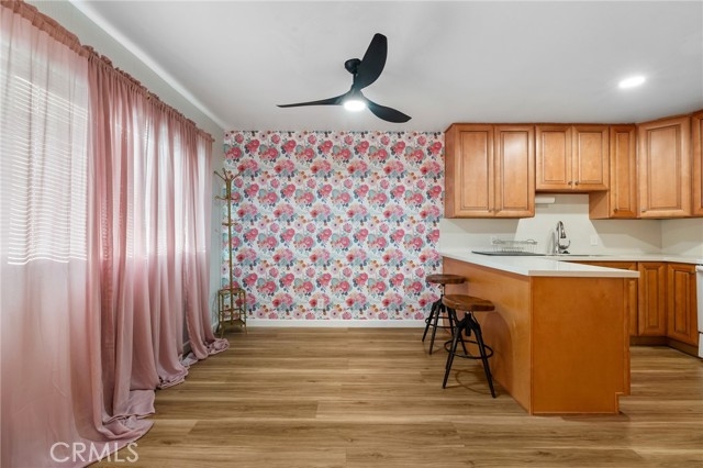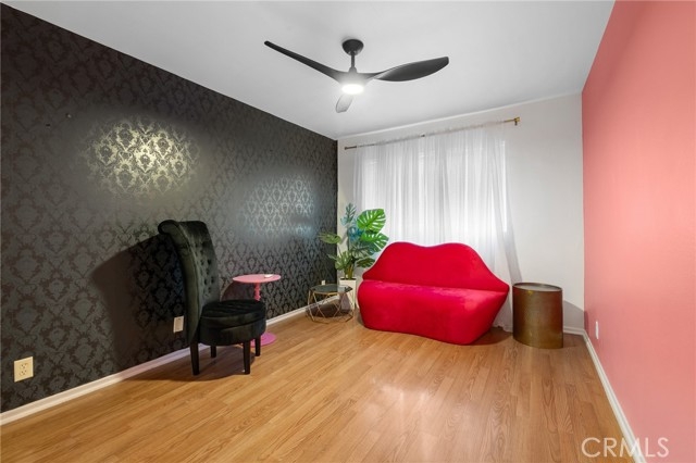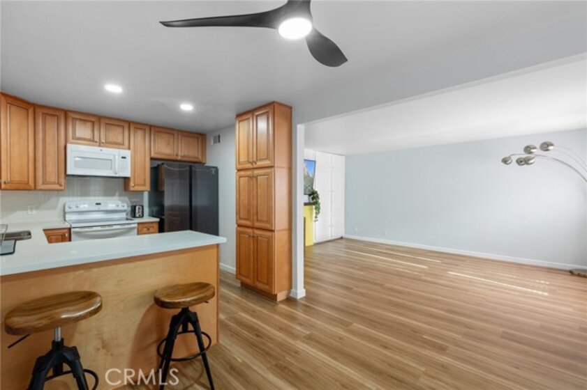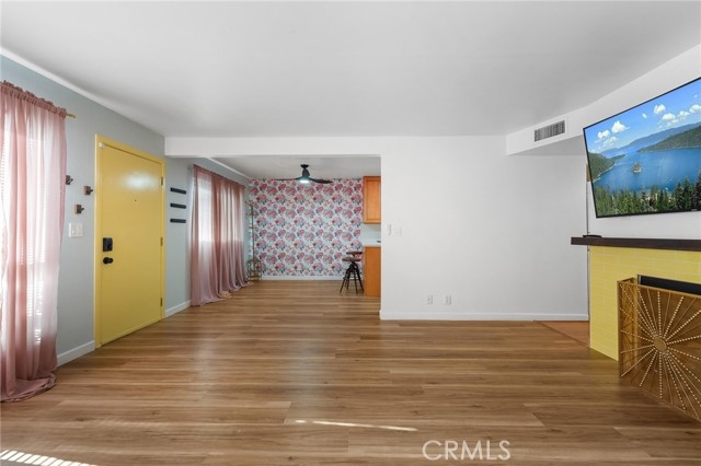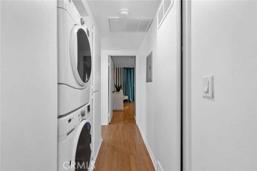 Welcome to 15015 Sherman Way #314, a beautifully upgraded top-level condo nestled in the heart of Van Nuys. This spacious 2-bedroom, 2-bathroom unit offers 1,004 square feet of comfortable and stylish living space, thoughtfully designed for both relaxation and convenience. Step inside to a bright and airy living room featuring sleek laminate flooring, a cozy fireplace, custom built-in cabinetry, and a mounted TV that’s included with the home. The open layout seamlessly flows into the dining area and kitchen, where you'll find durable laminate flooring, rich wood cabinetry, abundant counter space, and plenty of storage—ideal for anyone who loves to cook or entertain. Down the hallway, you’ll discover two generously sized bedrooms and two full bathrooms, perfectly situated for privacy. The primary suite is a true retreat with its large walk-in closet, private balcony—perfect for your morning coffee or evening unwind—and a well-appointed en-suite bathroom. Additional highlights include an in-unit stackable washer and dryer, all major appliances (refrigerator, stove, dishwasher) included, and central heating and air. This unit also comes with two assigned tandem parking spaces in a secure gated garage, adding peace of mind and convenience. The well-maintained complex is located close to shopping, dining, public transportation, and everything Van Nuys has to offer. Whether you're a first-time buyer, downsizing, or investing, this move-in ready condo is a fantastic opportunity to enjoy comfortable, low-maintenance living in a prime location.
