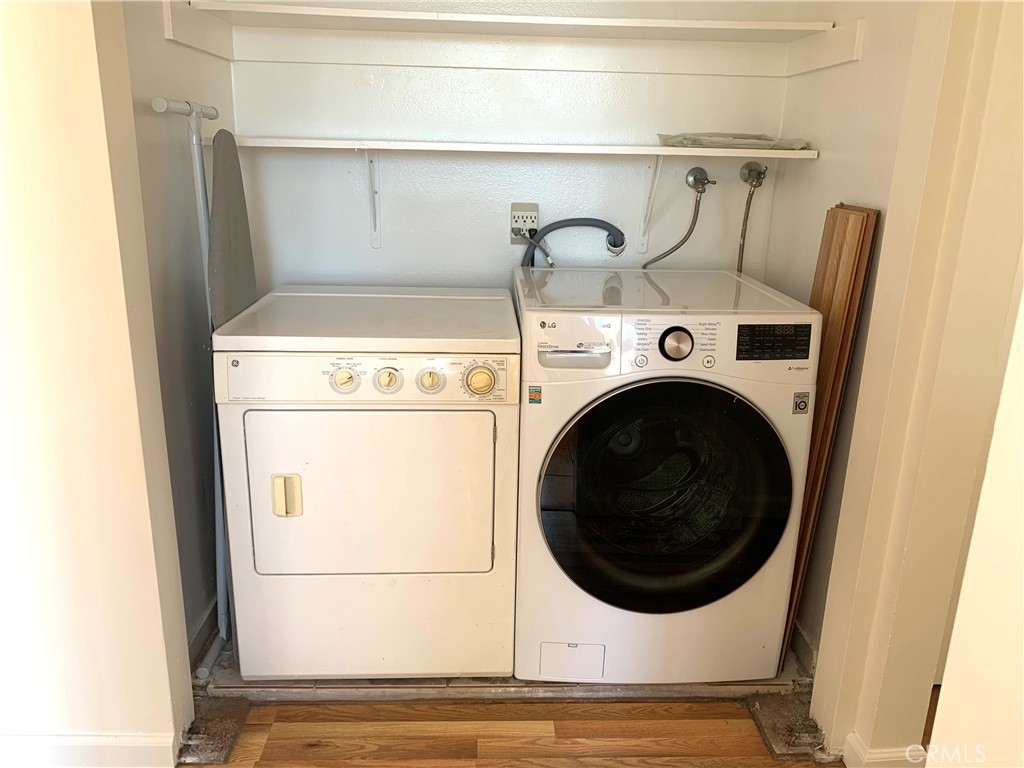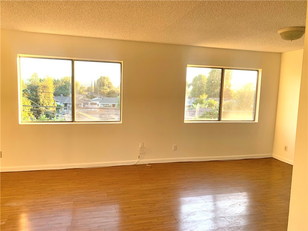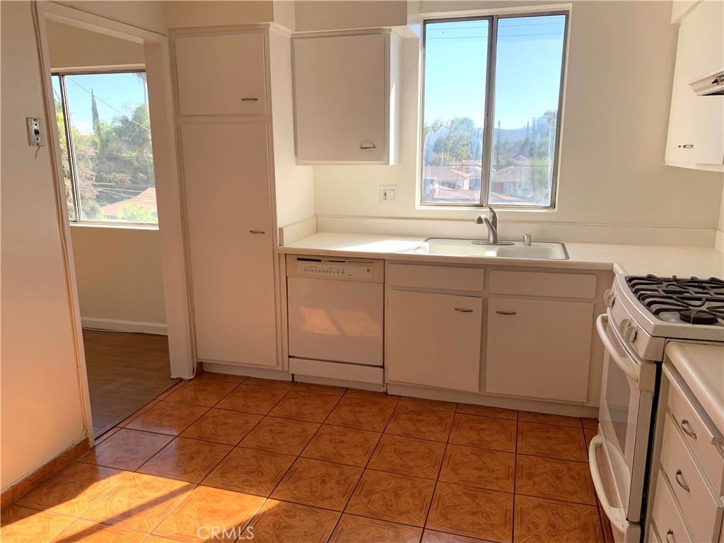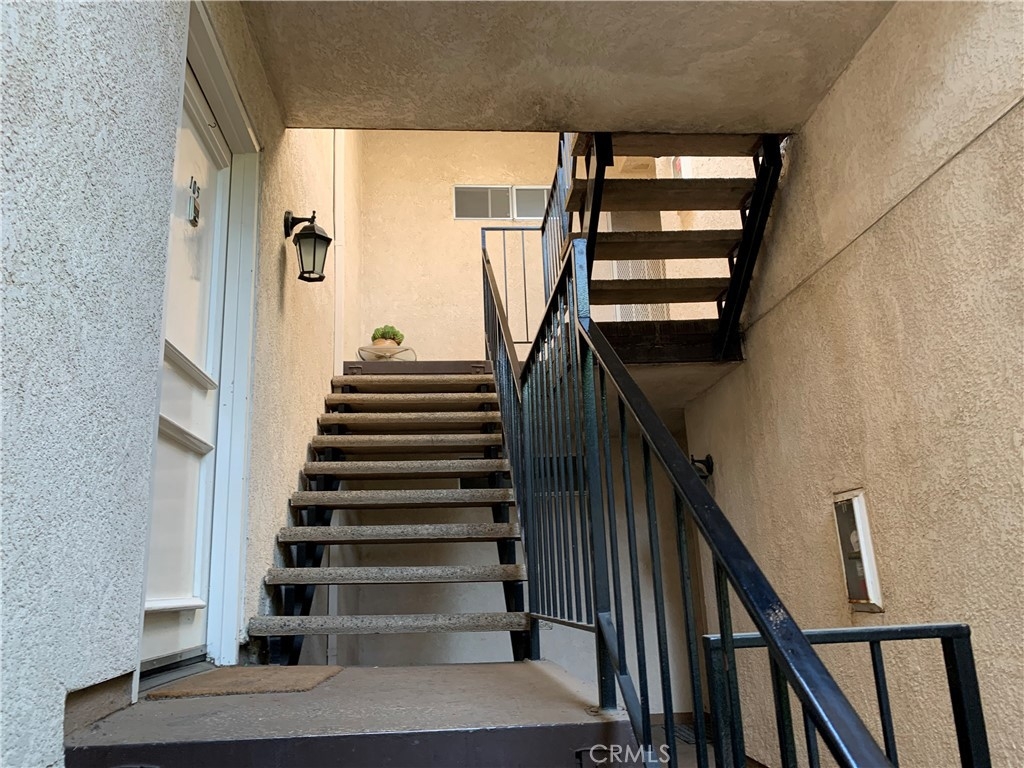 Bright top unit on 2nd level with views above the roof tops. End unit. Open and spacious over 1200 sf. Newly painted throughout. Priced to sell. Sold As Is. Here's your opportunity to upgrade the way you want it. Master bedroom has a walk in closet and cabinets. Living room with balcony, fireplace. Washer/dryer included. New kitchen faucet, New shower faucets and sink faucets in both bathrooms. Newly installed furnace. Complex is gated with lots of guest parking in the back off the alley. There's a beautiful pool and club house. Each unit has a storage room in the garage area. 2 tandem parking spaces.