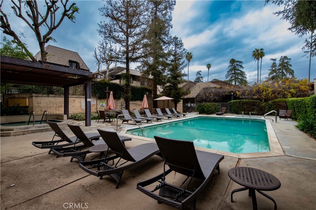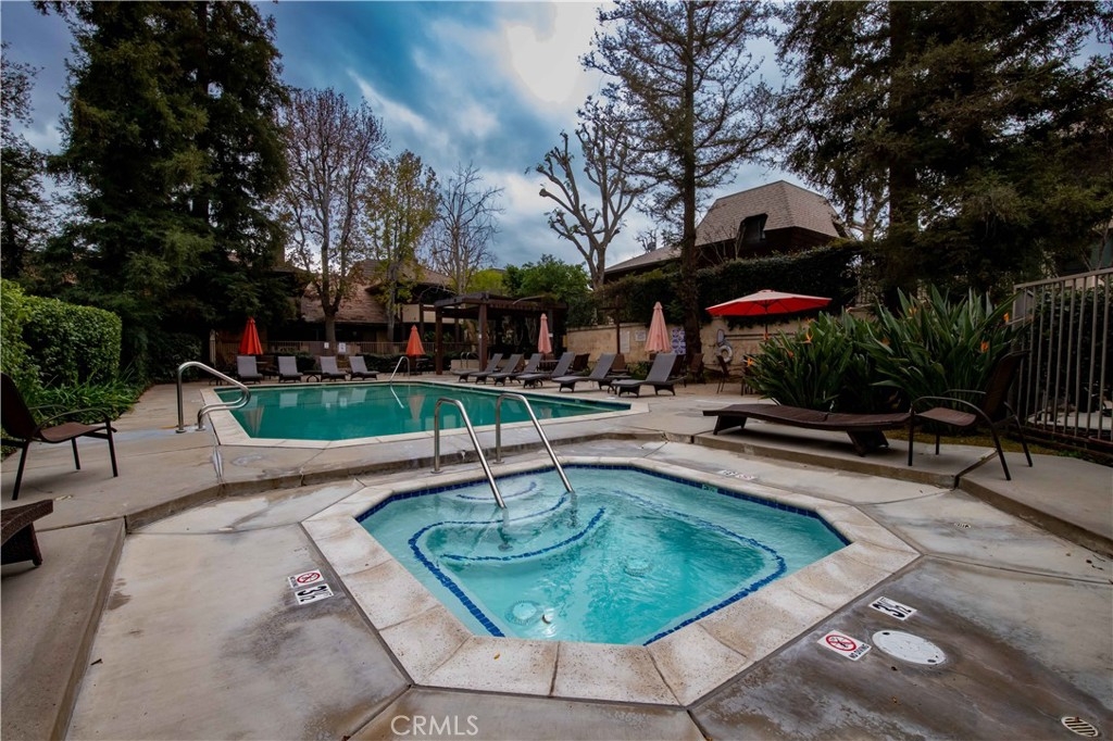 This townhouse has pride of ownership! This beautifully updated 2 bedroom, 1.5 bathroom unit is 1,396 SF with a patio. You are greeted by double door entry into a spacious, light and bright living space with travertine flooring, living room with fireplace, dining area, updated kitchen with stainless steel appliances, dishwasher, under cabinet lighting, counter top seating, walk-in pantry, laundry area, storage closet and updated half bath. The second floor features a spacious primary bedroom with laminate flooring, walk-in closet with custom shelving and balcony. The second bedroom also features laminate flooring and balcony. There is a large hall bathroom with hydro massage bathtub. Other features include: LED recessed lighting, Video doorbell and keyless entry, plantation shutters, direct vent gas fireplace, HVAC (2016), water heater (2021), updated 200 amp electrical panel and wiring (2019) and plumbing (2022). Includes secured two tandem parking spaces and large storage room (13' x 10') with custom shelving and new steel door. Close to shopping, freeway, Starbucks, schools and more! You don't want to miss this one!