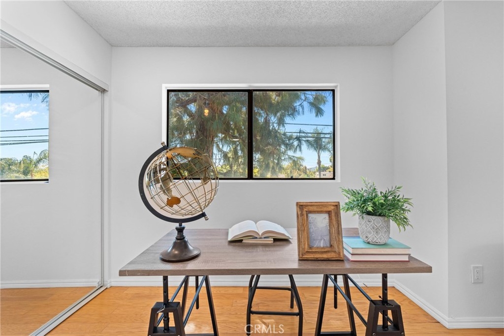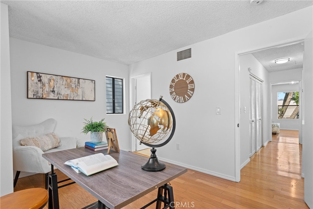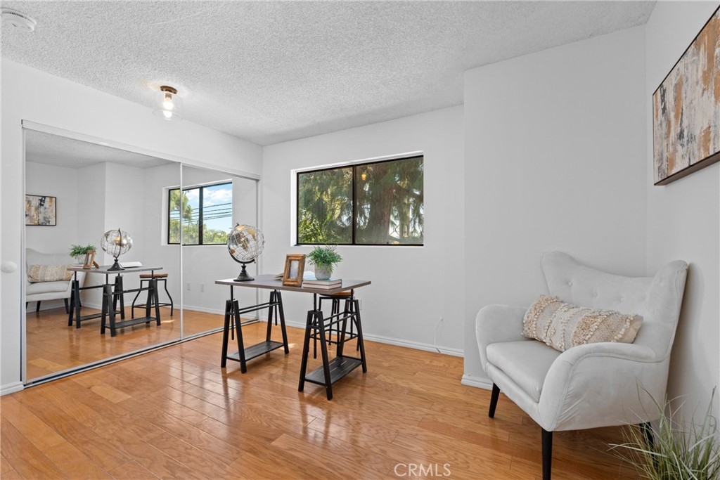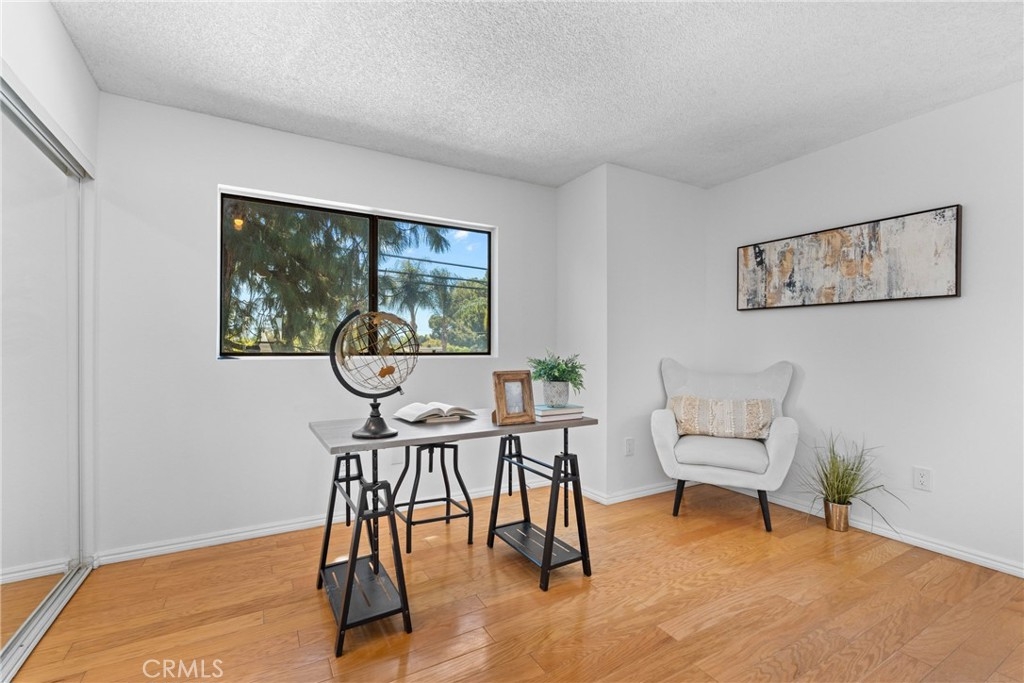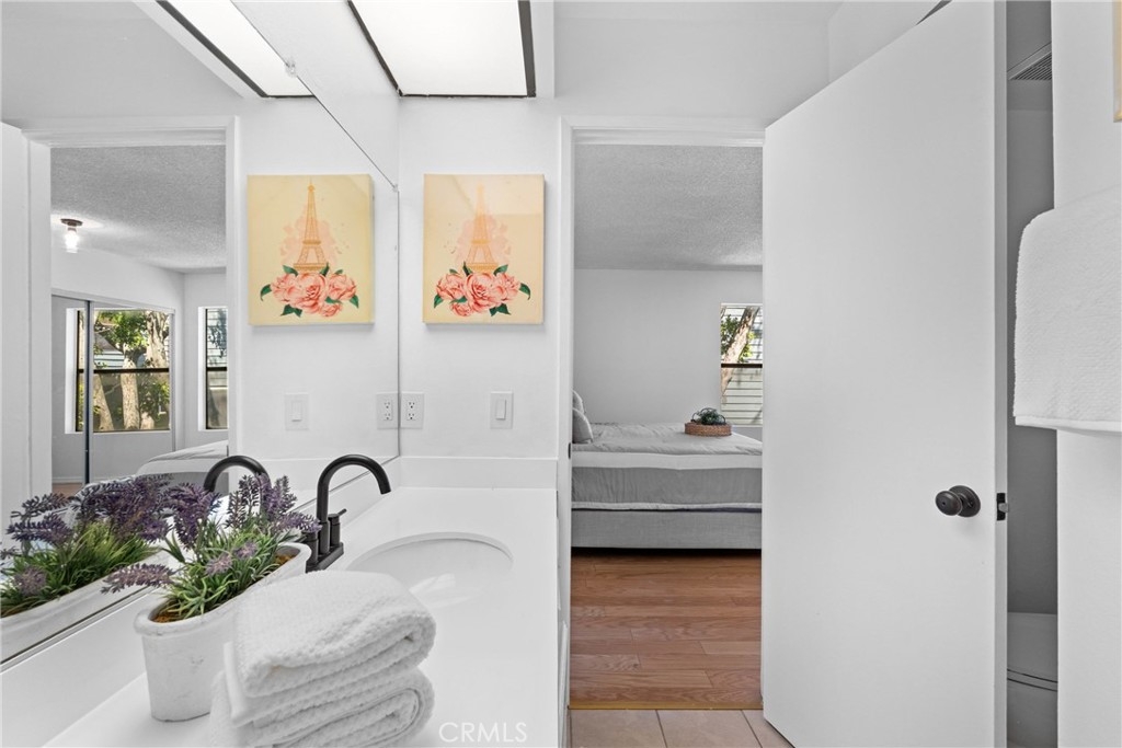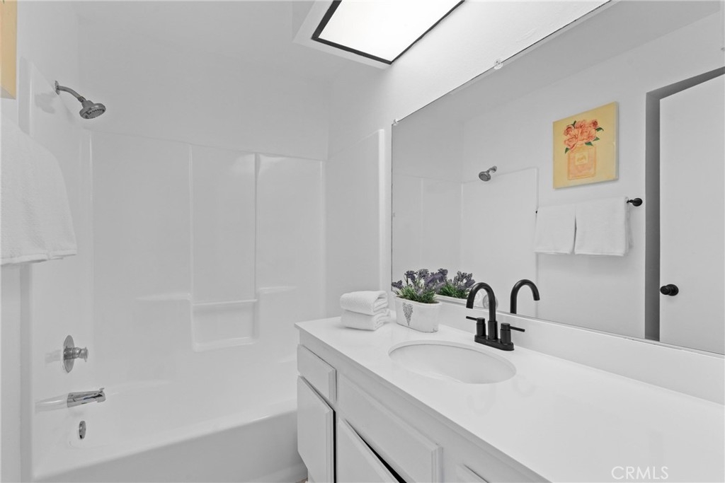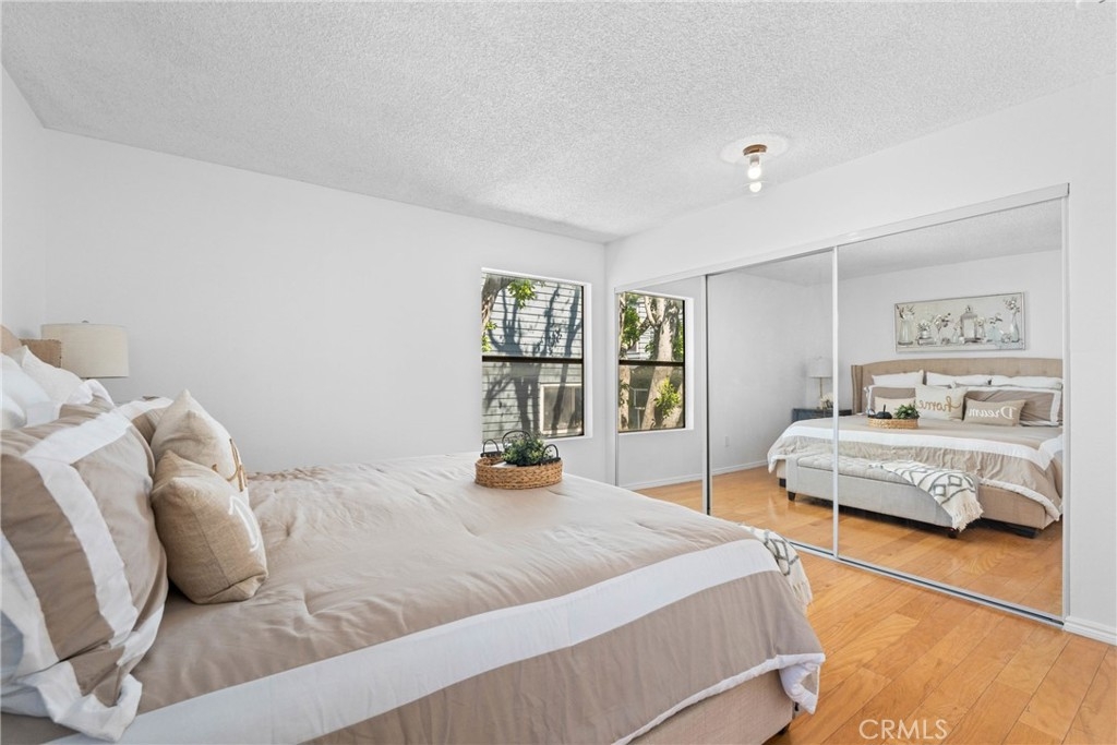 This charming 2-bedroom, 2.5-bath corner-lot home is perfect for first-time buyers looking to start fresh. You'll love the two spacious master suites, each with its own private bathroom, offering both comfort and privacy. Located in a private gated community, this home provides peace of mind and a sense of security. The interior has been beautifully upgraded with new flooring and fresh paint throughout. Elegant recessed lighting and a modern chandelier add a touch of sophistication and warmth to the living space. Outside, a sparkling swimming pool offers the perfect place to relax and unwind. Enjoy the convenience of two dedicated parking spaces with additional storage, along with ample guest parking for visitors. This upgraded home blends comfort, style, and functionality in a clean, quiet gated neighborhood, making it an ideal choice for those beginning their homeownership journey. You'll also appreciate the easy access to major roads, shopping, and dining, all set within a peaceful and serene environment.