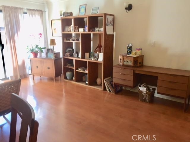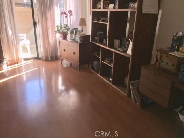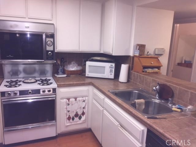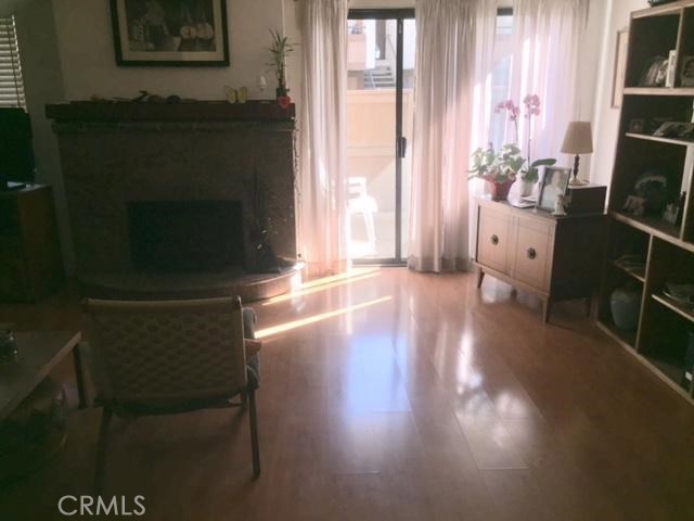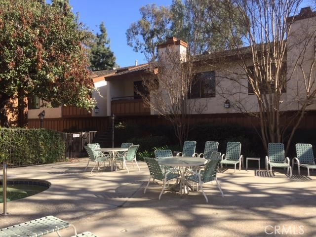 BACK ON THE MARKET - BUYER COULD NOT GET LOAN! Their loss, your gain! This is an absolutely beautiful unit in a gated community centrally located and close to shopping, freeways, entertainment and sports. One story condo with laminate wood floors throughout and a spacious living room with a central marble fireplace with raised hearth. Separate dining room area looks to enclosed patio. Large kitchen with custom tile counters, black refrigerator and dishwasher, and self standing stove with top unit. Lots of counter space with stainless steel double kitchen sink and tons of cabinets. Master Bedroom is spacious with two separate closets with custom built-ins, master bath has shower and tub with enclosed glass shower door. Inside stacked washer and dryer completes this self-contained unit that you will enjoy for many years to come. Security building with community pool and spa, includes 2 parking spaces (one covered). Current renter would like to stay, so it is a great rental.