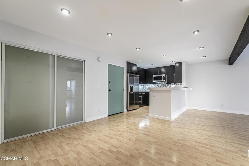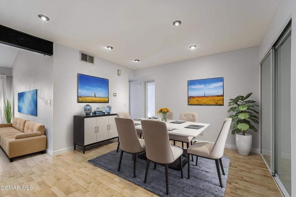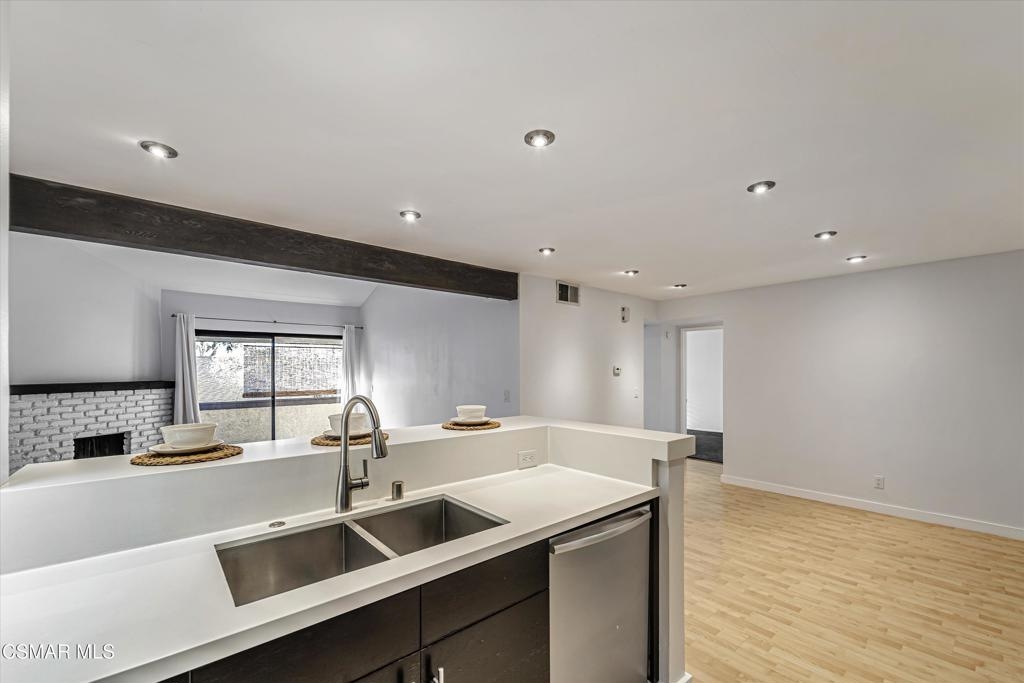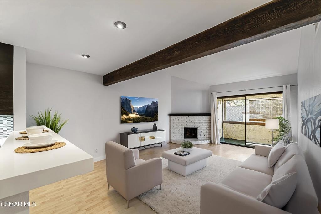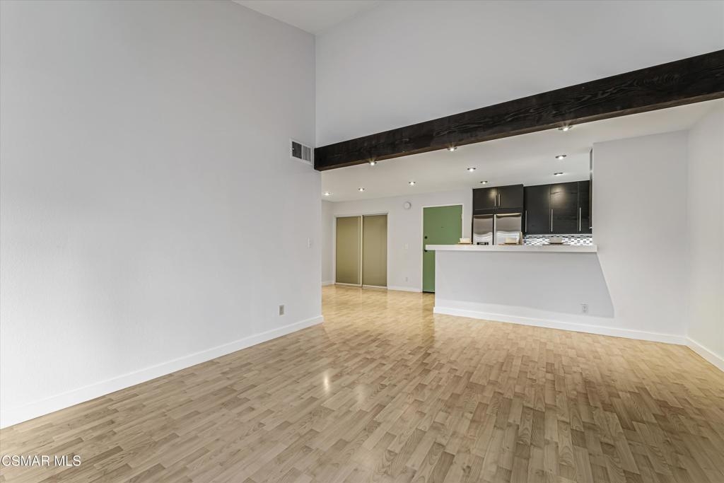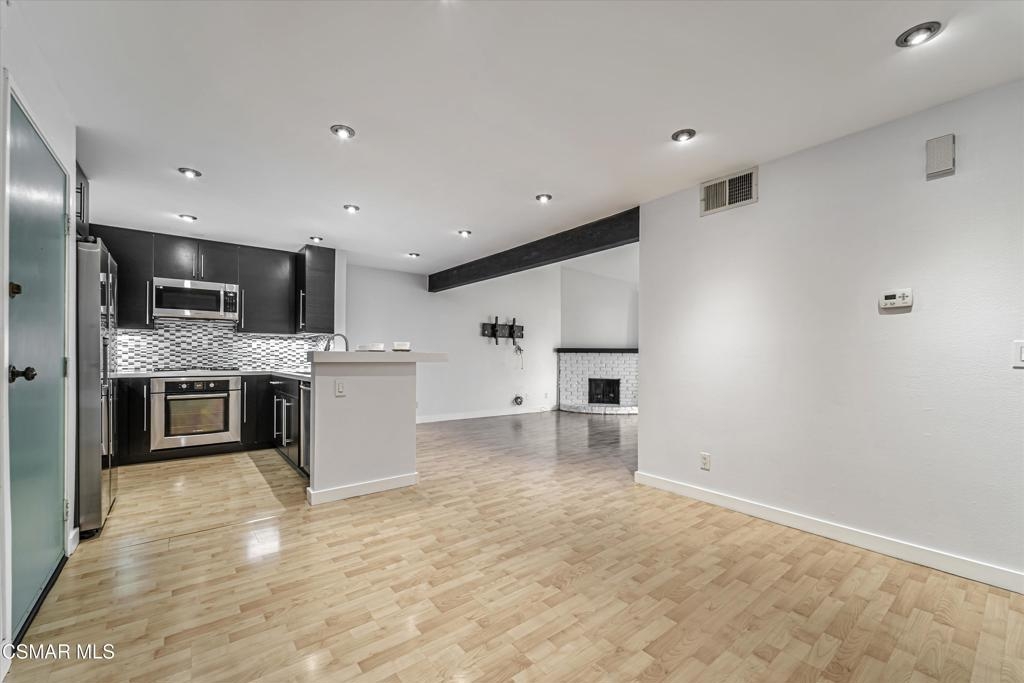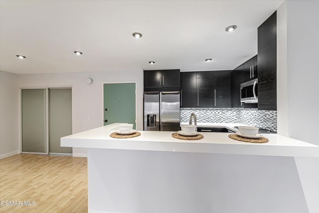 Proudly representing this beautiful, updated top-floor unit with elevator access. It has been cared for with the utmost pride in ownership. It offers 2 bedrooms, 2 bathrooms, high vaulted ceilings, dining room, large living room, private patio, in-unit stackable washer & dryer. Remodeled kitchen with quartz counter tops, micro/convection oven, new Samsung refrigerator and SS Bosch range oven and dishwasher. There is glass mosaic backsplash, swing-out corner shelves and a SS sink. The master bathroom has an upgraded shower. This living room has an exquisite gas fireplace, laminate wood flooring, sliding glass door to the patio. Central A/C and heating. LED recessed lighting. As you step out of the unit you can enjoy a pool, spa, the BBQ area and peaceful walks throughout the large grounds. There are two covered parking spaces. The elevator is located near this unit for easy access. The HOA dues include earthquake insurance, guest parking, water, trash, sewer, and basic cable. Home Sweet Home!